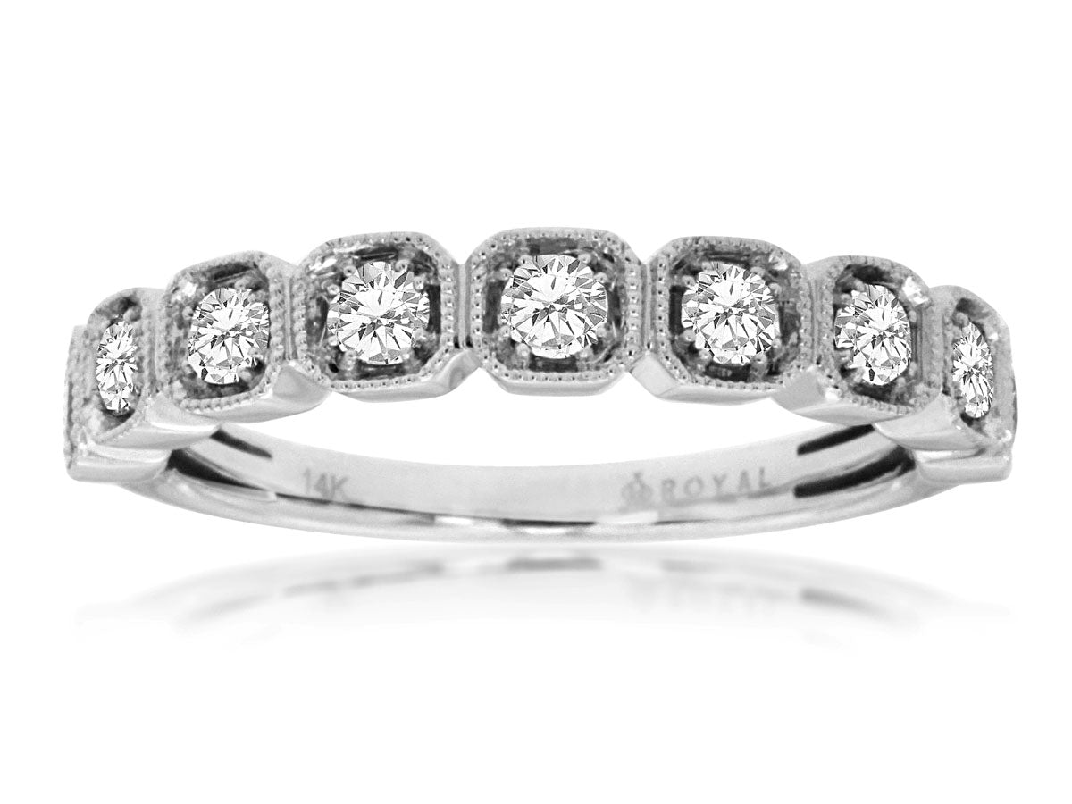 14K White Gold Illusion Bezel Set Diamond Wedding Band