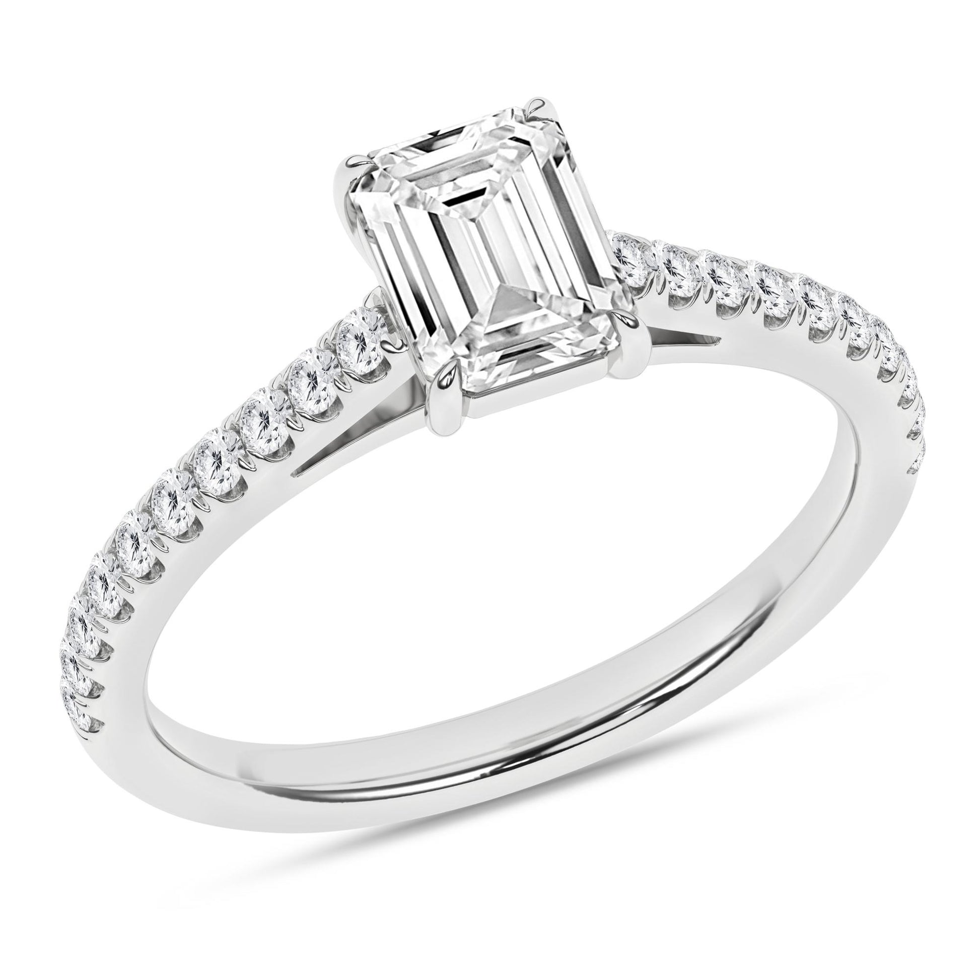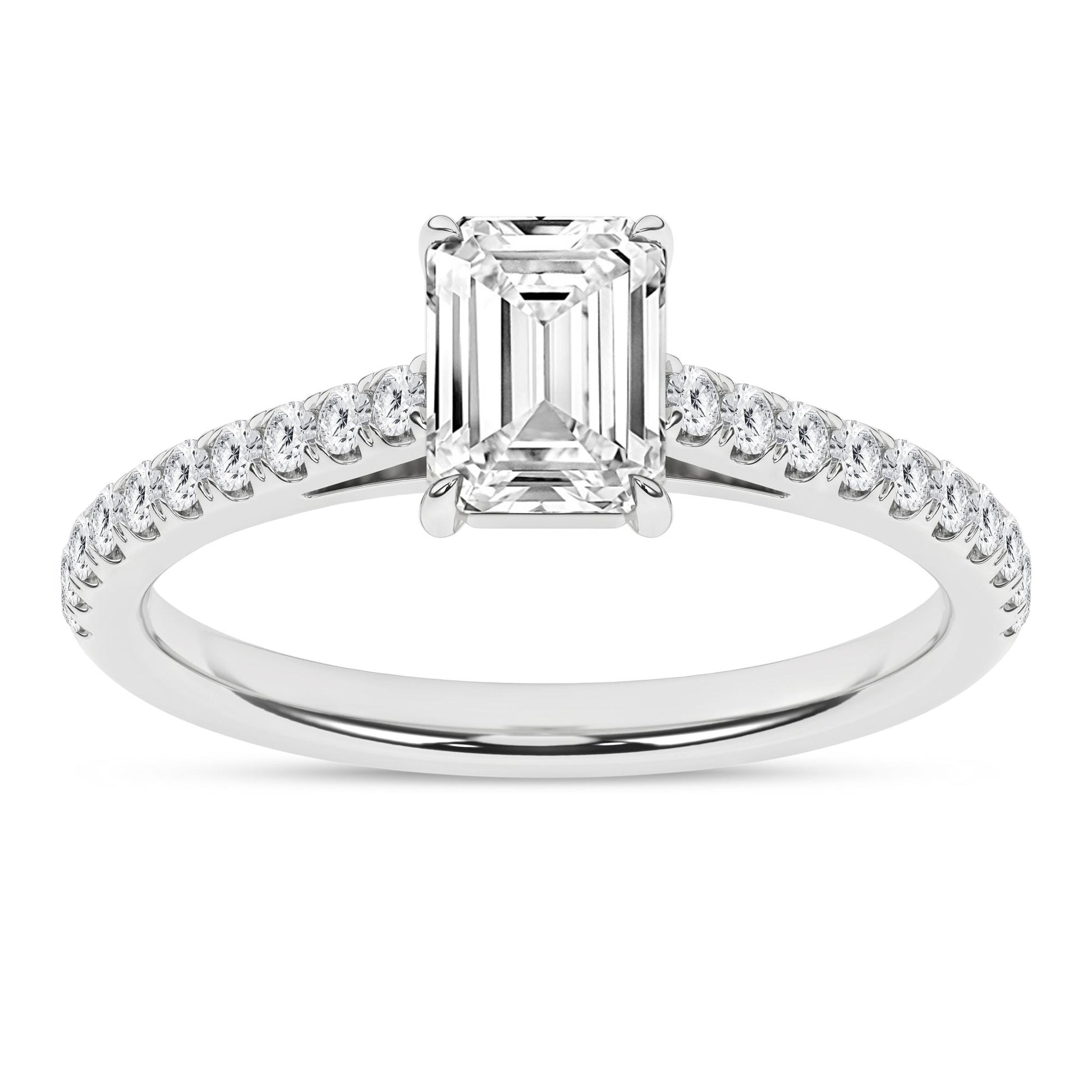 Embrace classic elegance with our Classic Emerald-Cut Lab-Created Diamond Engagement Ring, meticulously crafted in 14KT white gold and adorned with 1.27 ctw of diamonds. The true centerpiece of this captivating ring is the emerald-cut 1.01 ct revelation diamond gracing the center, held securely in a four-prong eagle-claw setting. Each diamond within this exquisite ring is certified by IGI, ensuring authenticity and impeccable quality, with EF color diamonds and VS clarity. This ring is a symbol of timeless beauty and craftsmanship, a perfect representation of your enduring love and commitment.