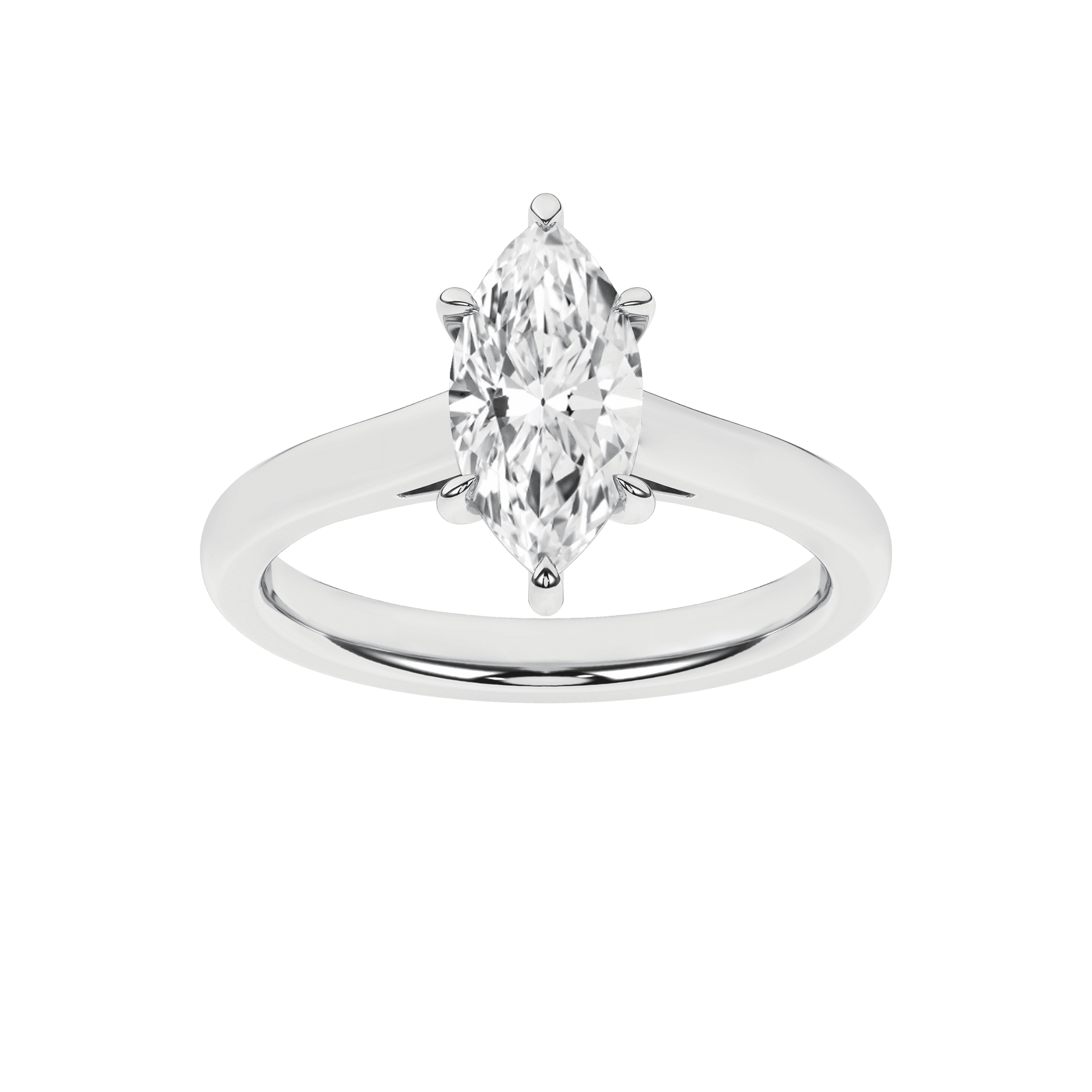Presenting our classic marquise shape Lab Grown diamond solitaire ring - a testament to enduring elegance. Certified by IGI for authenticity, this exquisite ring is set in 14KT white gold and adorned with 1.52 ct marquise shape diamond. The diamonds' remarkable F color and VS clarity, validated by IGI, come to life in the timeless six-prong setting, creating a mesmerizing display of brilliance.