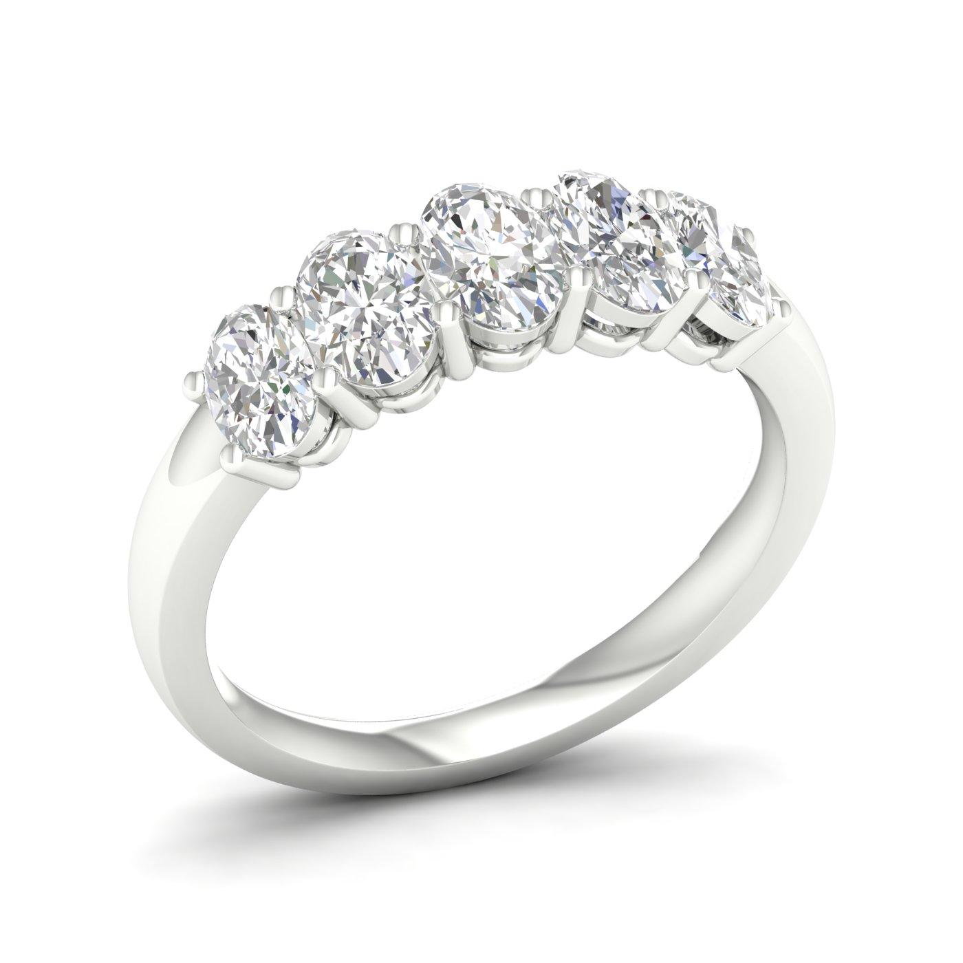 14K White Gold Lab Grown 1.50CTW Oval Diamond 5 Stone Band