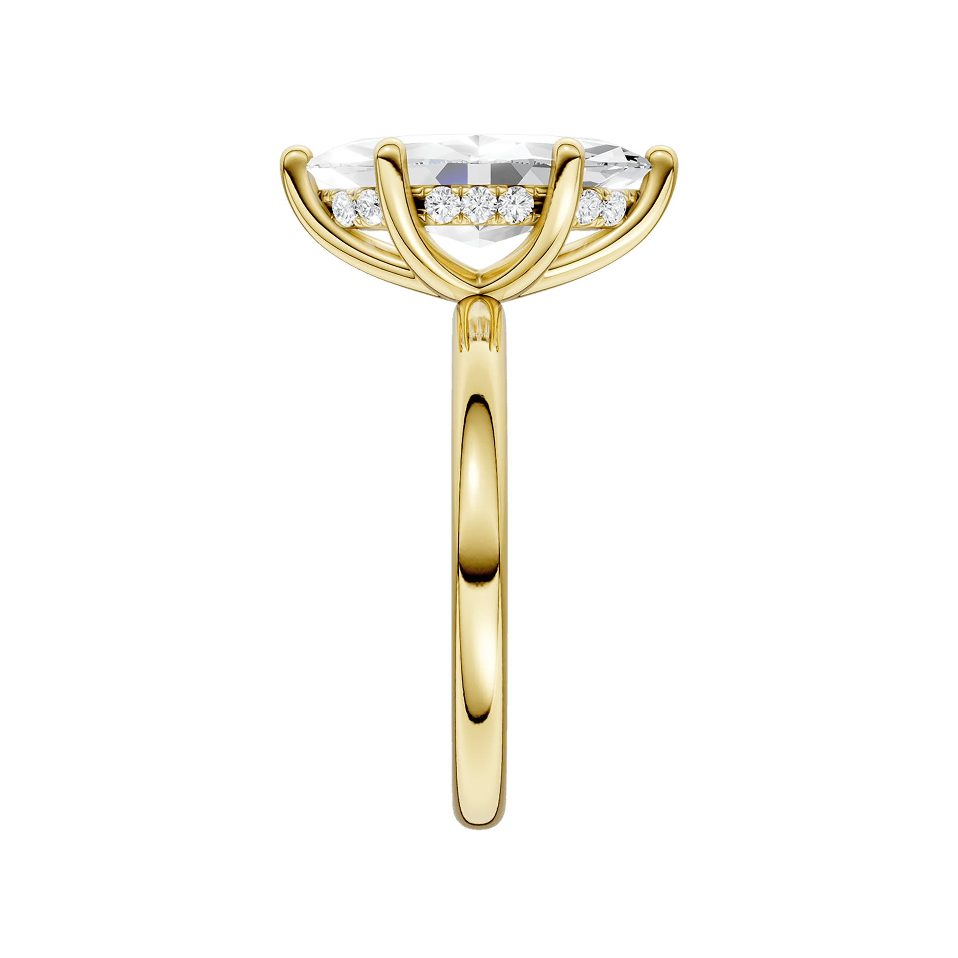 Introducing our Lab Grown Diamond Hidden Halo Engagement Ring, expertly crafted in 14KT white gold and adorned with a total of 2.60 ctw of Lab Grown Revelation diamonds. The centerpiece of this exquisite ring is a stunning marquiese cut diamond, weighing 2.50 ct, boasting EF color and VS clarity, and certified by IGI for authenticity and quality. With its latest and modern design, this ring captures both contemporary trends and the timeless elegance of a classic era, making it a symbol of enduring love and style.