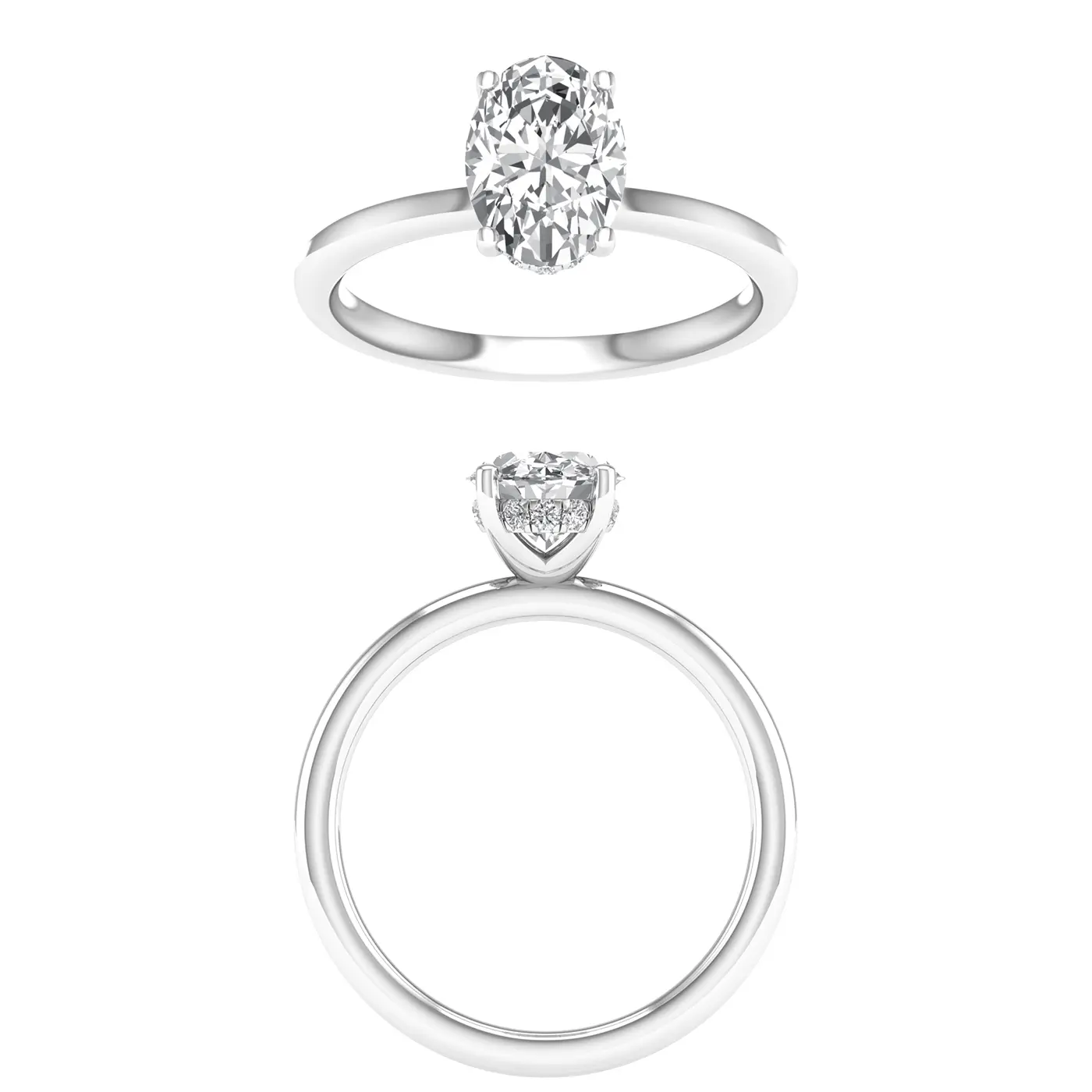 Introducing our Lab Grown Diamond Hidden Halo Engagement Ring, expertly crafted in 14KT white gold and adorned with a total of 2.67 carats total weight. The centerpiece of this exquisite ring is a stunning oval brilliant-cut diamond, weighing 2.56 ct, boasting E/F color and VS clarity, and certified by IGI for authenticity and quality. With its latest and modern design, this ring captures both contemporary trends and the timeless elegance of a classic era, making it a symbol of enduring love and style.