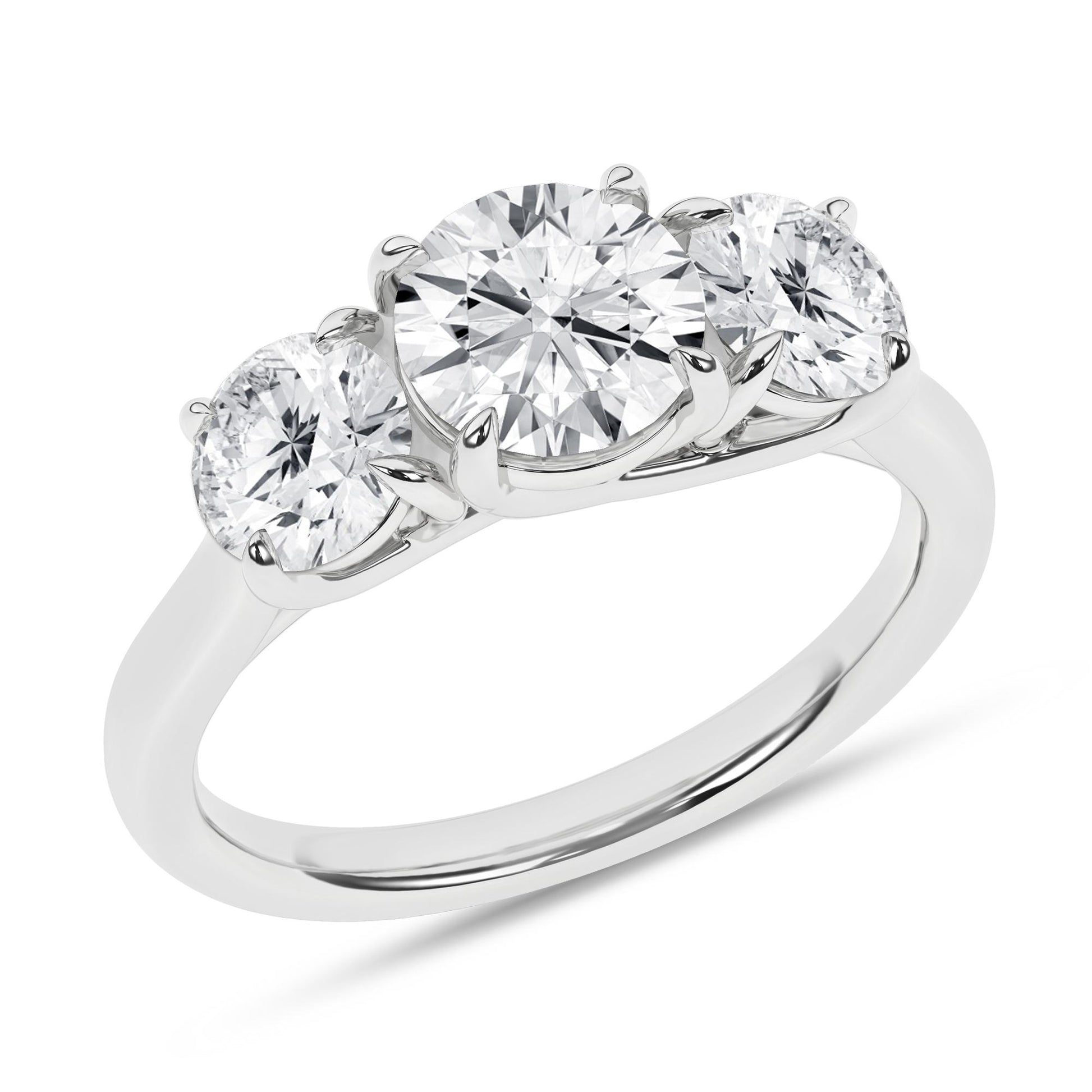 Discover the timeless elegance of our Lab-Created Diamond Ring, a masterpiece featuring three magnificent round-cut diamonds seamlessly set in a row, creating a harmonious display of radiant beauty in 14KT gold. This exquisite ring is set with 3.03 ctw of diamonds. The center round-cut stone is a dazzling 1.51 ct, while the sides boast equally stunning 1.50 carats total weight of diamonds. With EF color diamonds and VS clarity, this ring sparkles with unmatched brilliance, making it a remarkable symbol of your enduring love and commitment.