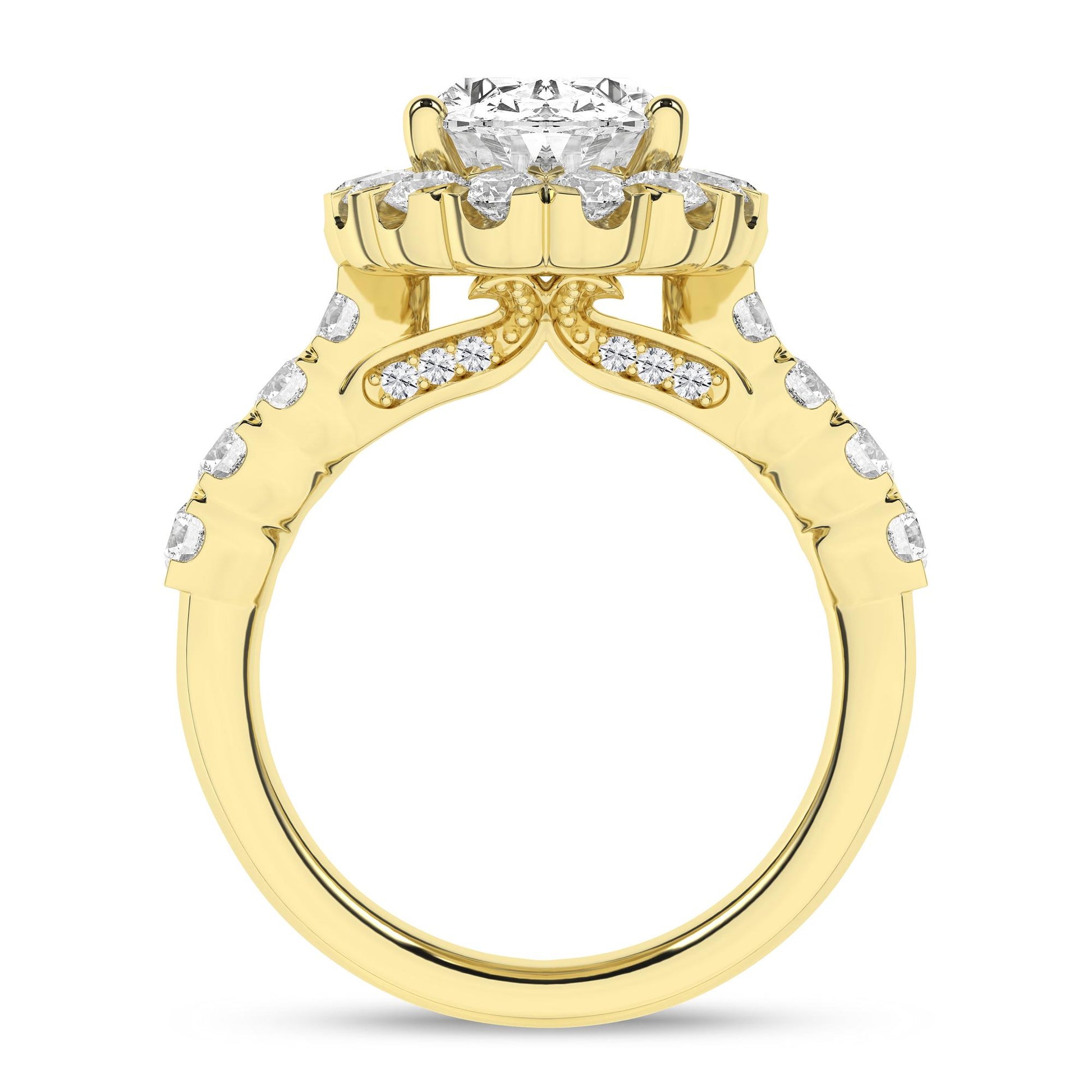 14K Yellow Gold Lab Grown 3.01ctw Oval Diamond Halo Engagement Ring