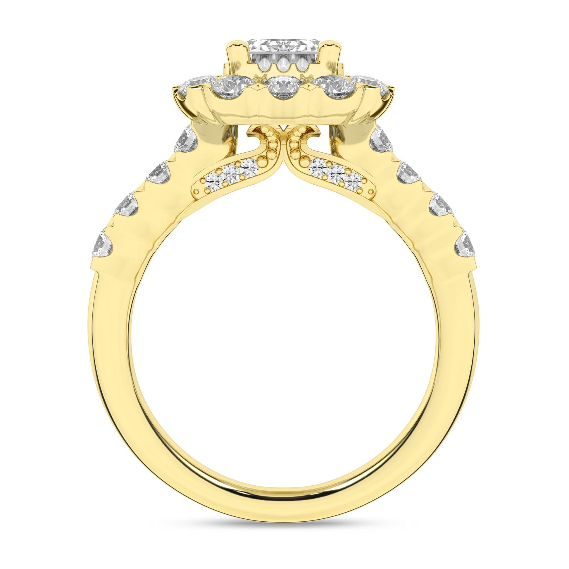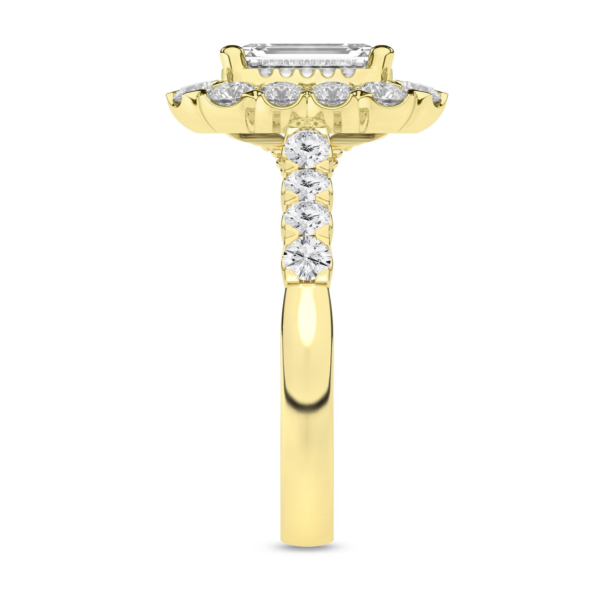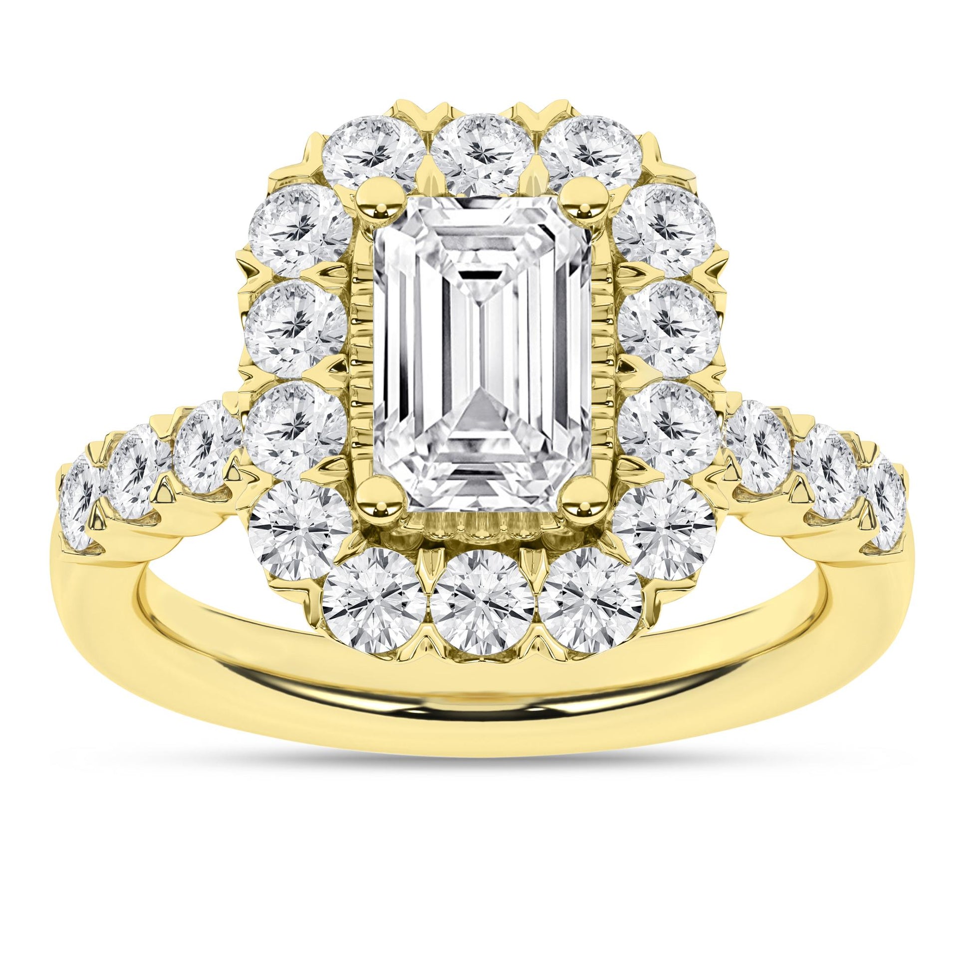 14K Yellow Gold Lab Grown 3.60ctw Emerald Diamond Halo Engagement Ring