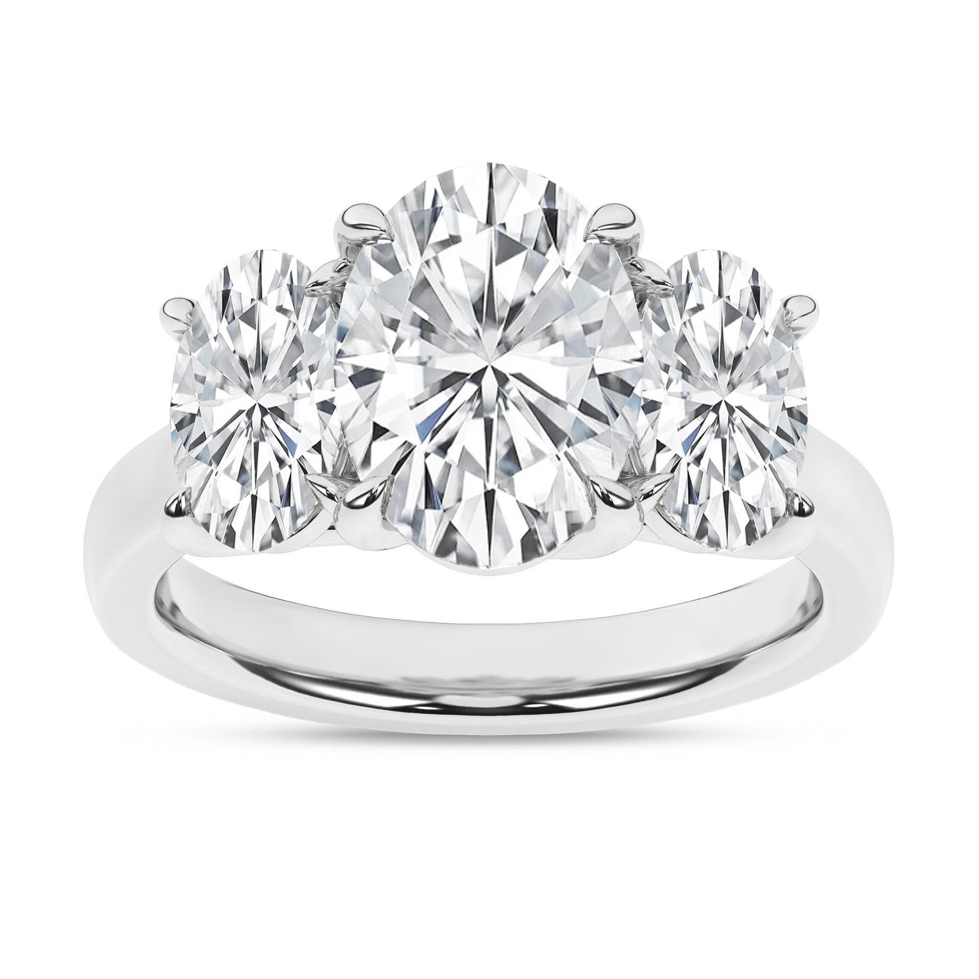 14K White Gold Lab Grown 5.0 ctw Three Stone Oval Engagement Ring