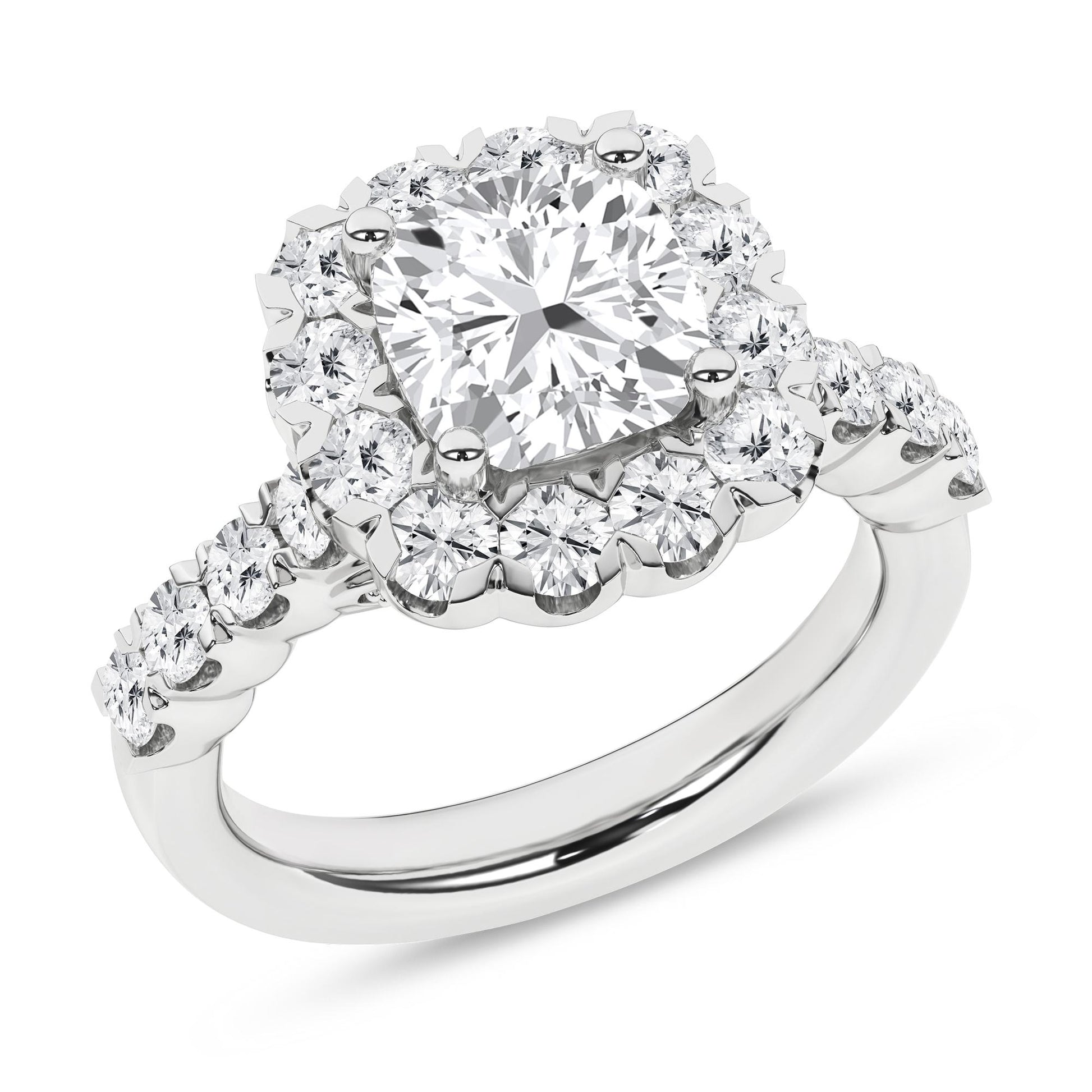 14K White Gold Lab Grown Cushion Cut Diamond Engagement Ring with Halo