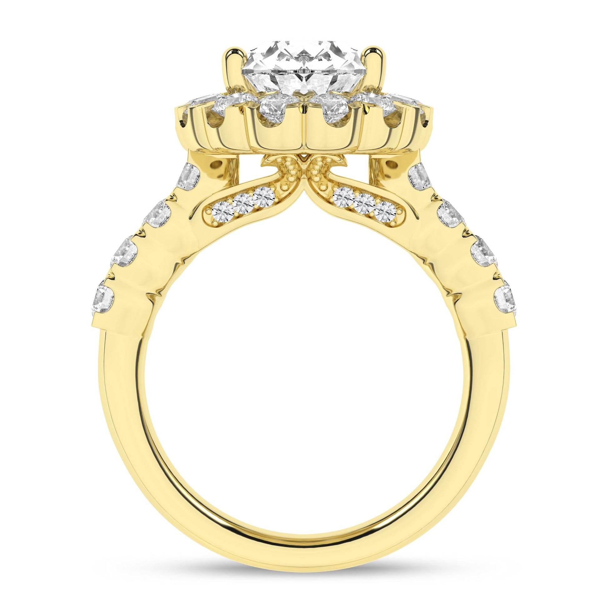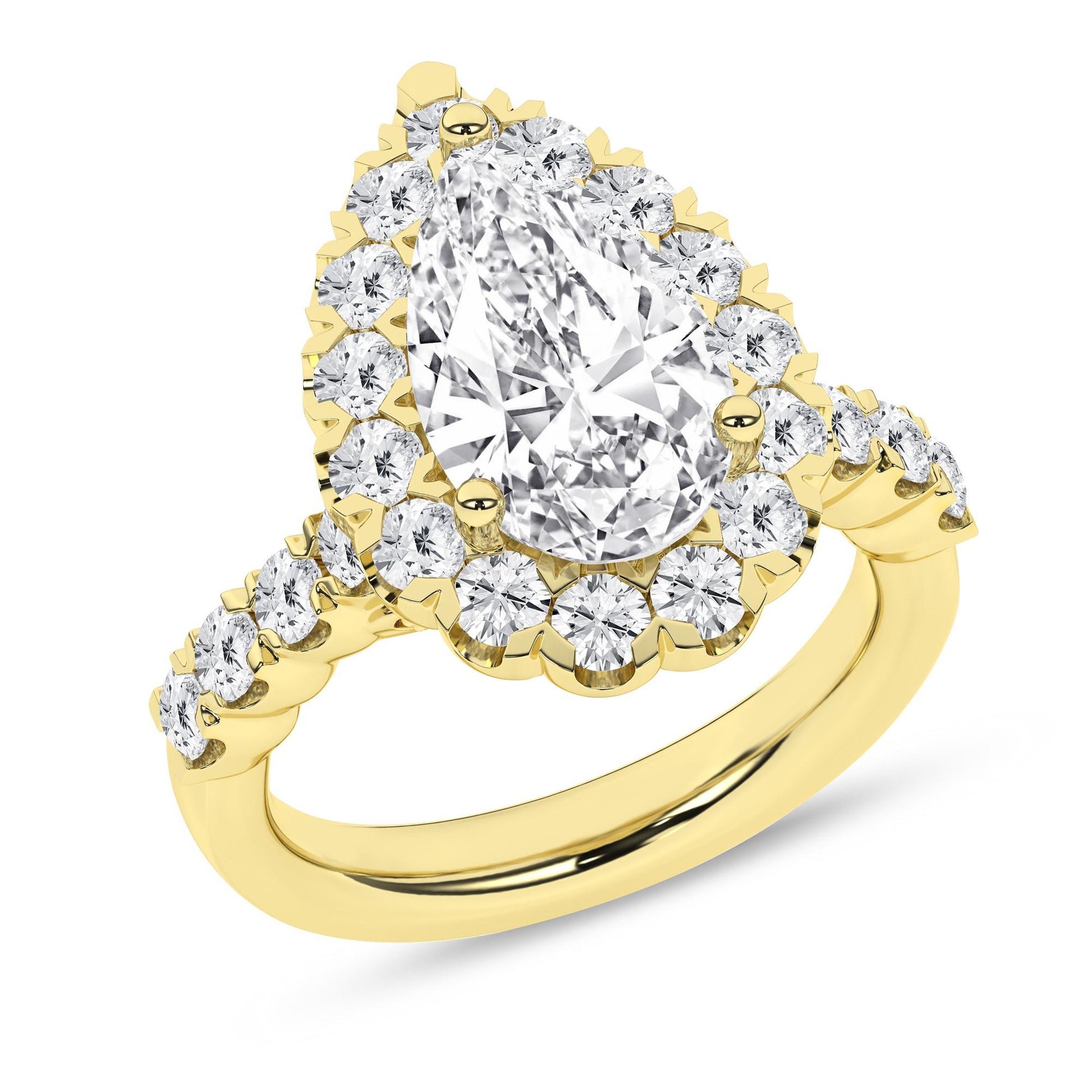14K Yellow Gold Lab Grown Pear Diamond Halo Engagement Ring