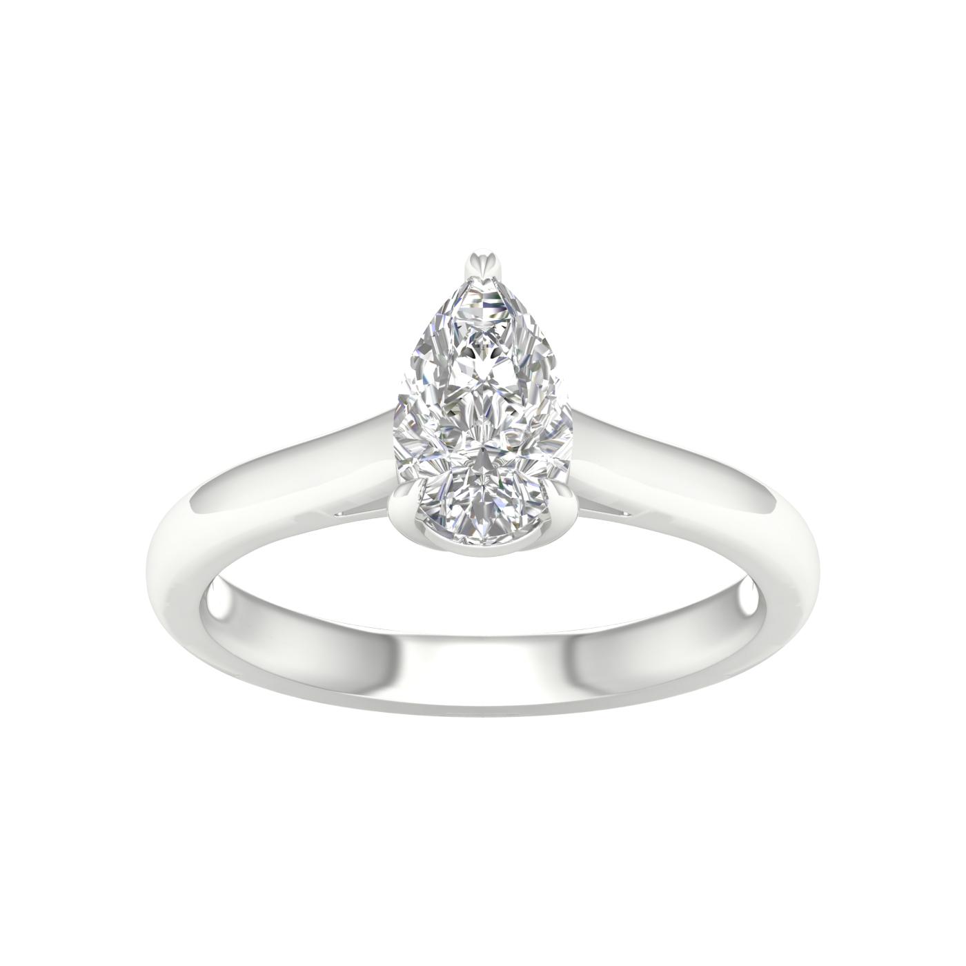 14K White Gold 1.03ct Lab Grown Pear Diamond Solitaire Engagement Ring