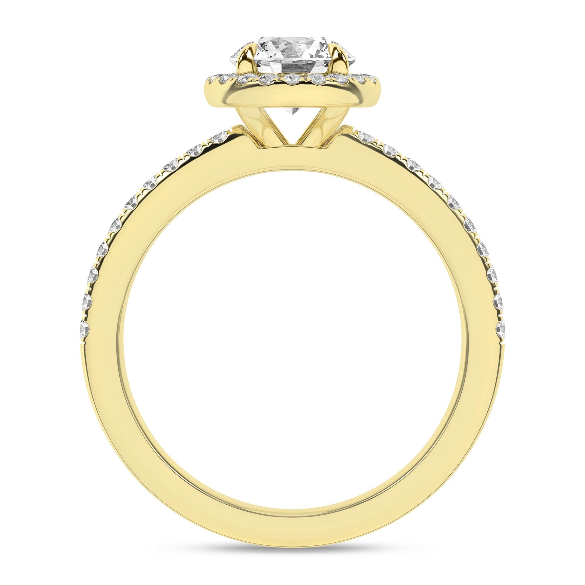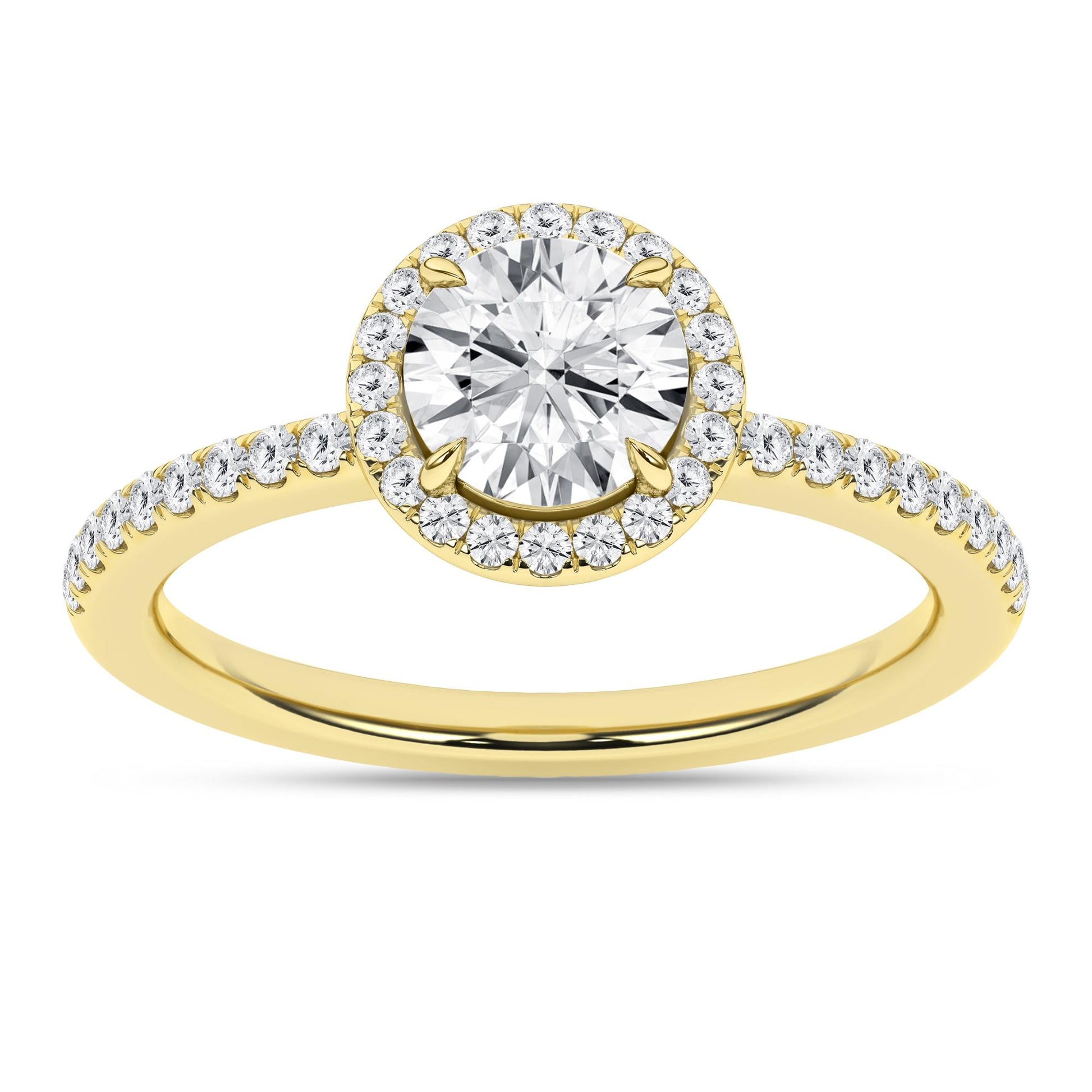 14K Yellow Gold Lab Grown Round Brilliant Diamond Halo Engagement Ring