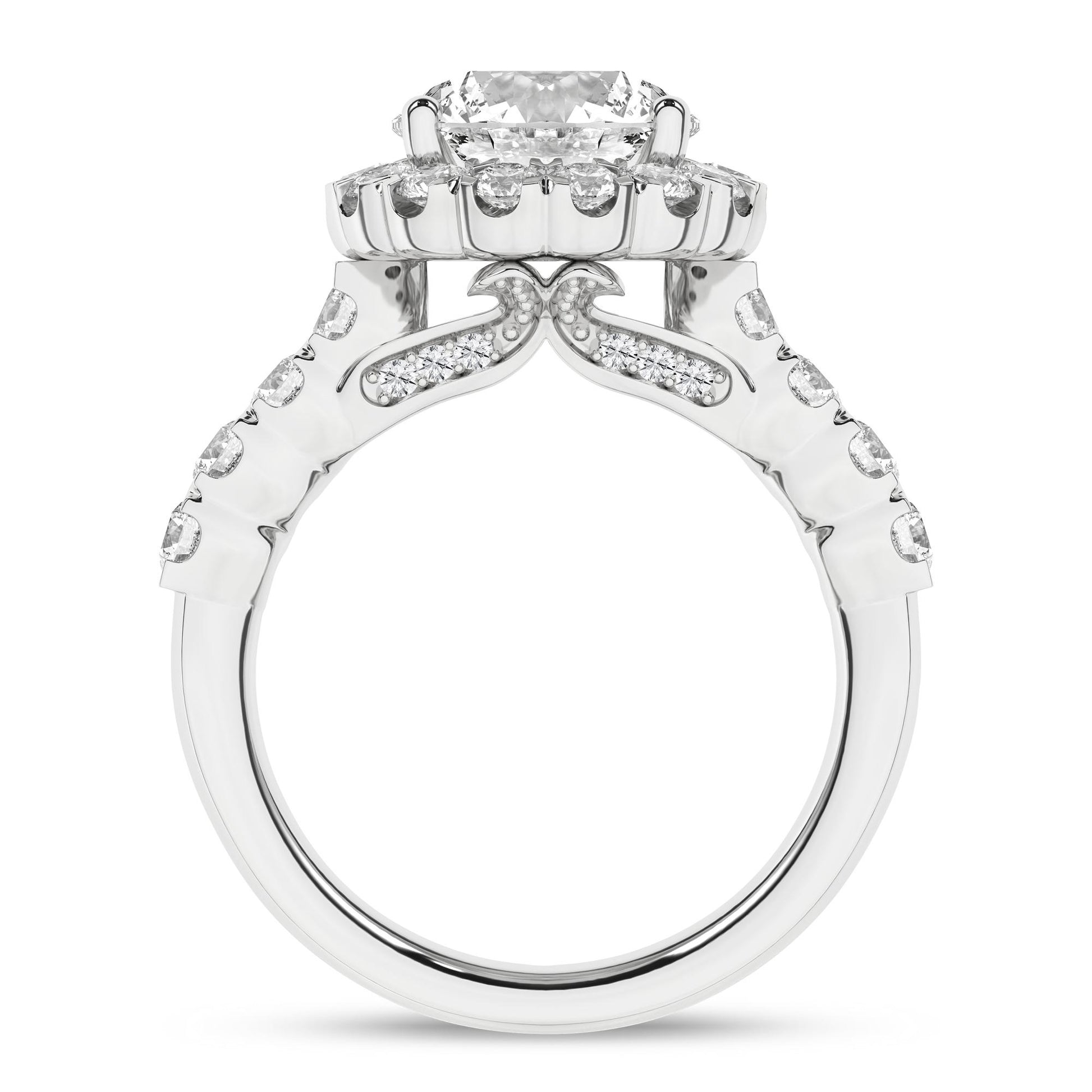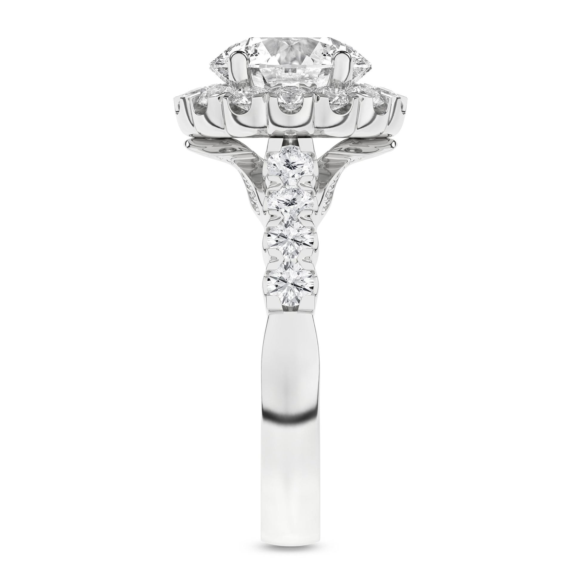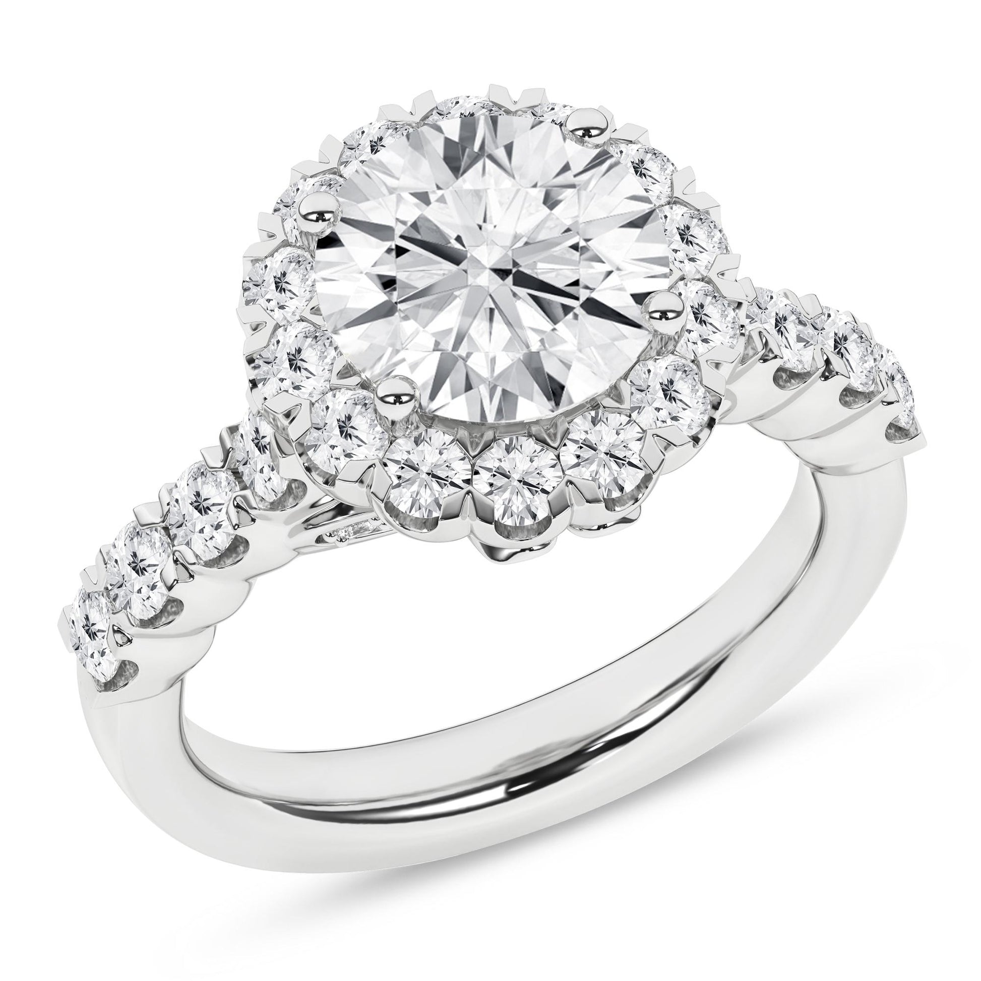 14K White Gold Lab Grown Round Diamond Halo Engagement Ring