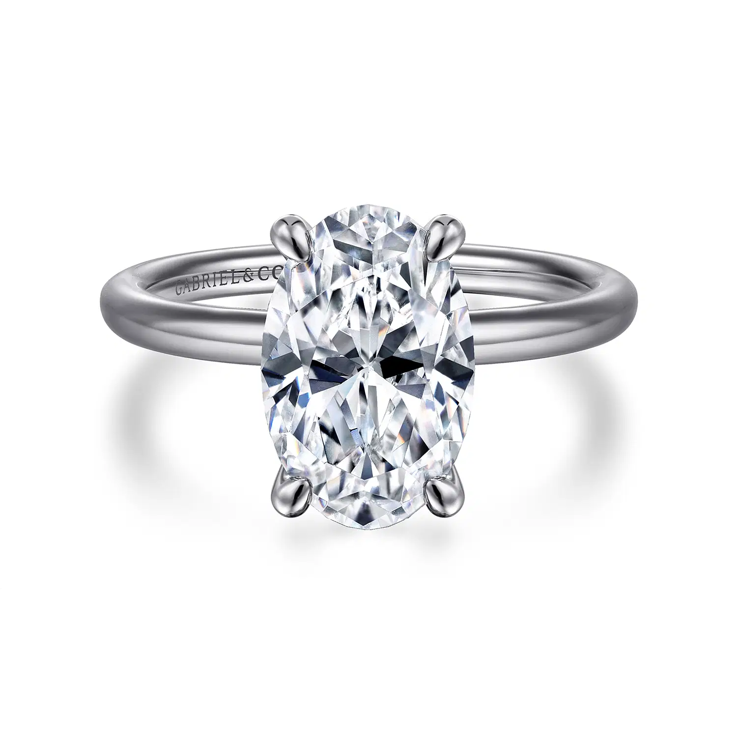 14K White Gold Oval Solitaire Diamond Engagement Ring