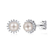 14K White Gold Pearl with Diamond Halo Stud Earrings