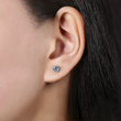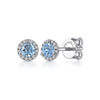 14K White Gold Round Blue Topaz and Diamond Halo Stud Earring