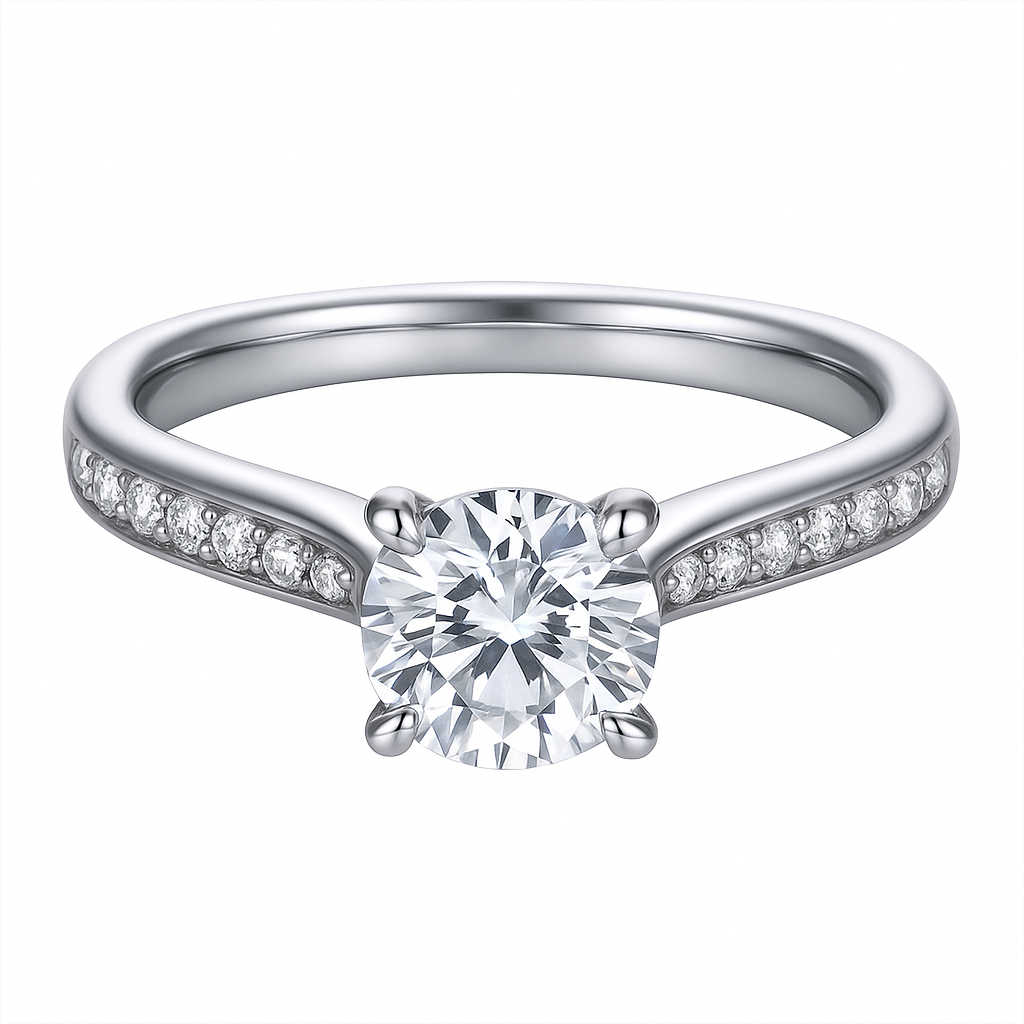 This exquisite 14K White Gold Round Diamond Channel Set Engagement Ring is the perfect symbol of your love and commitment. Crafted from high-quality 14K white gold, this elegant ring features a stunning round diamond at the center, complemented by .32ctw of sparkling diamonds channel-set along the band for a sophisticated and timeless look. The channel setting ensures a secure and sleek design, highlighting the brilliance of each diamond without compromising comfort. Ideal for those who appreciate classic beauty with a modern twist, this ring is the perfect choice for an unforgettable engagement.
