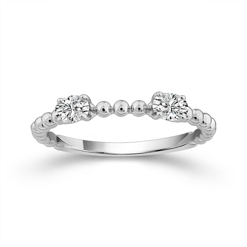14K White Gold Round Diamond Stations Beaded Stackable Ring