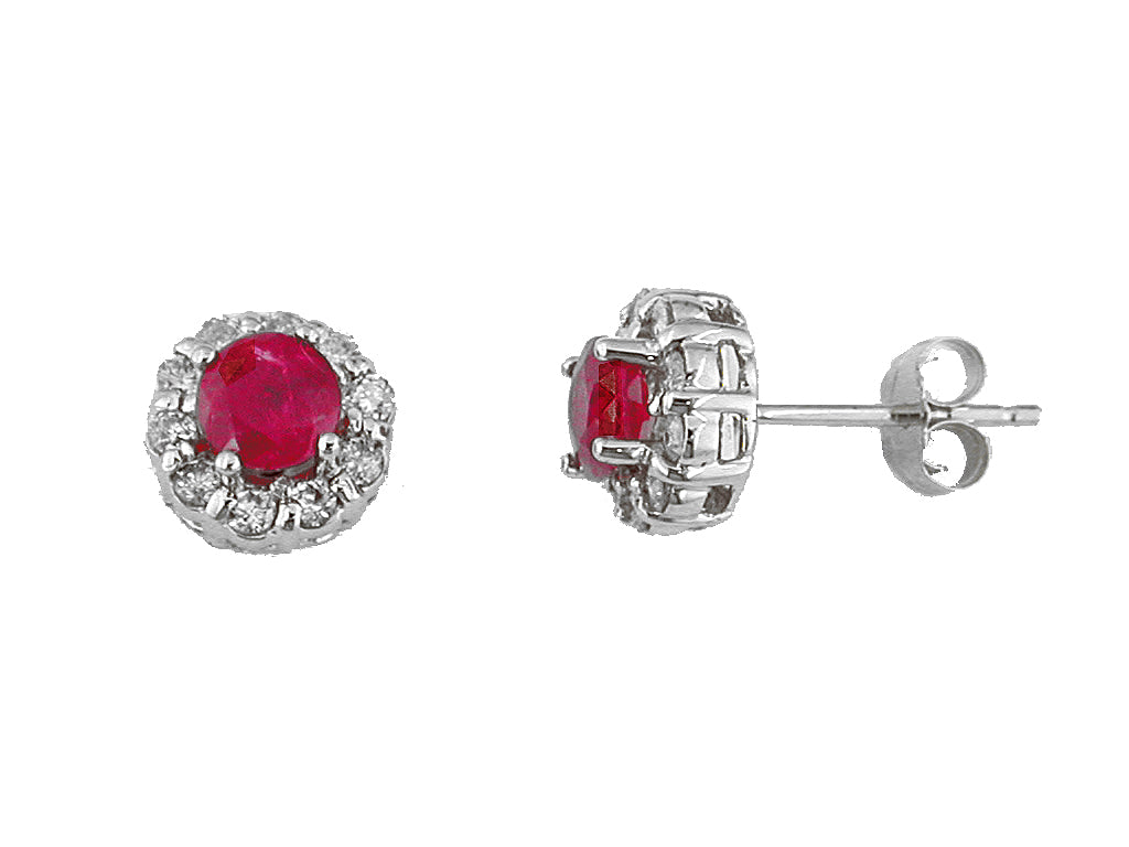 14K White Gold Ruby and Diamond Stud Earrings