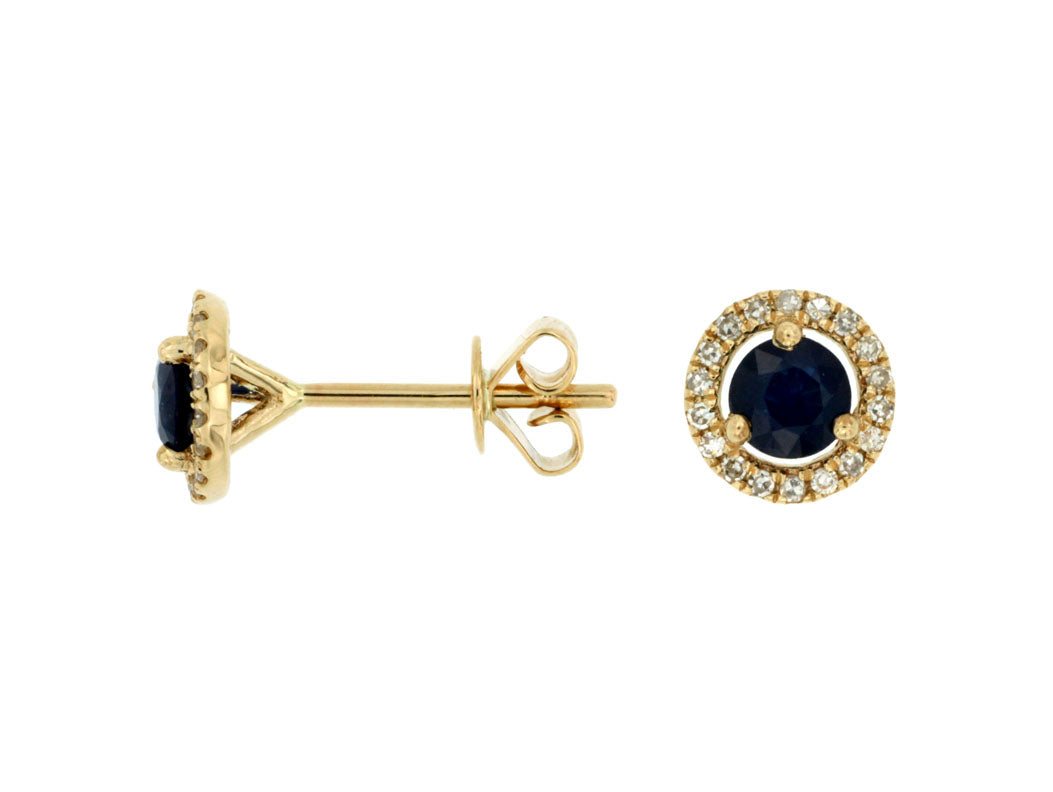 Brilliant 0.14ctw pave diamond halos encircle these classically styled, stud earrings. The vibrant September birthstone is cut in a round shape (.90ctw).