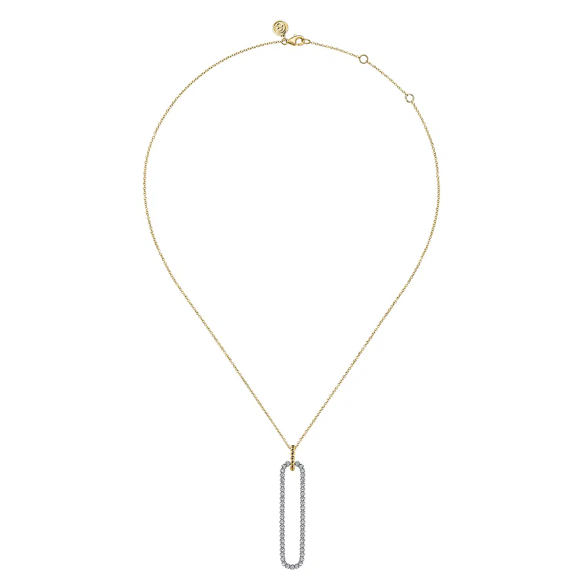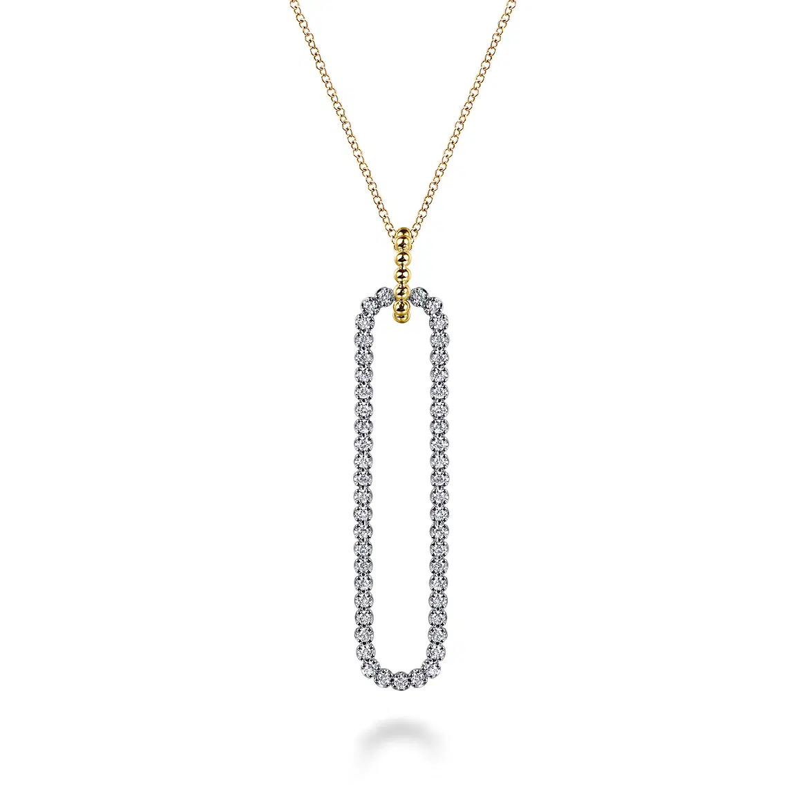 14K White Yellow Gold Bujukan Beads and Diamond Pendant Necklace