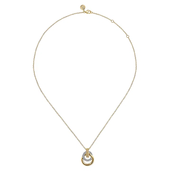 14K Two Tone Gold Bujukan Diamond Circle Pendant Necklace