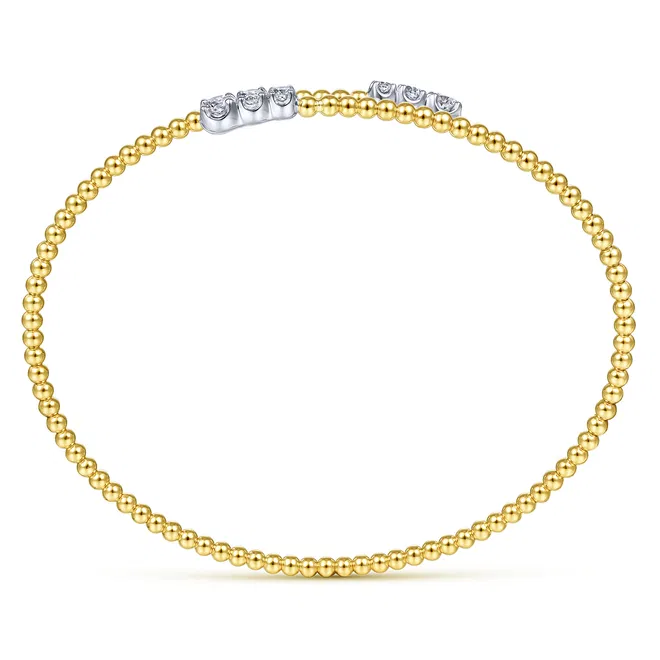 14K White-Yellow Gold Bujukan Graduating Diamond Bypass Bangle