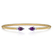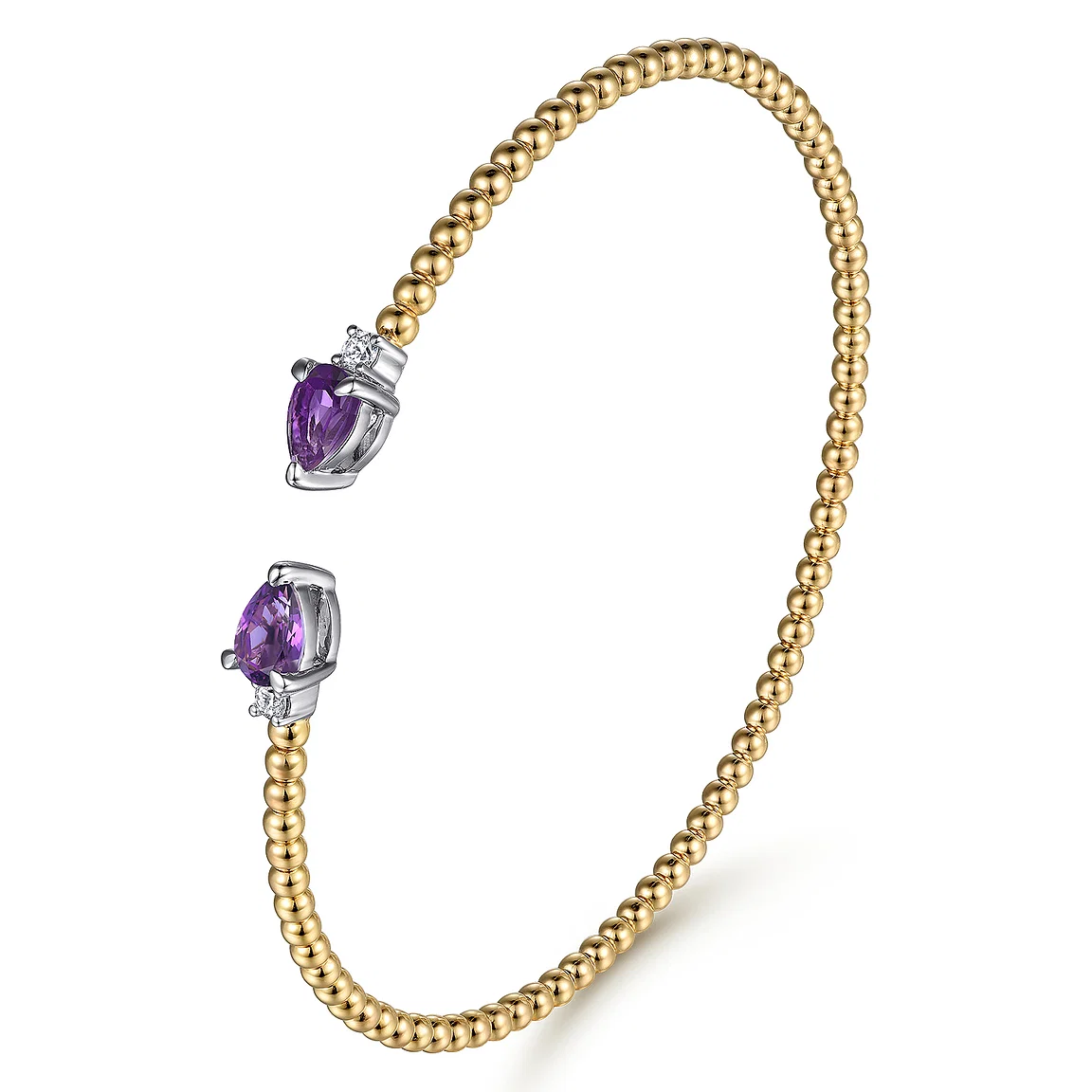 14K White Yellow Gold Bujukan Open Cuff Bracelet with Amethyst and Diamond End Caps