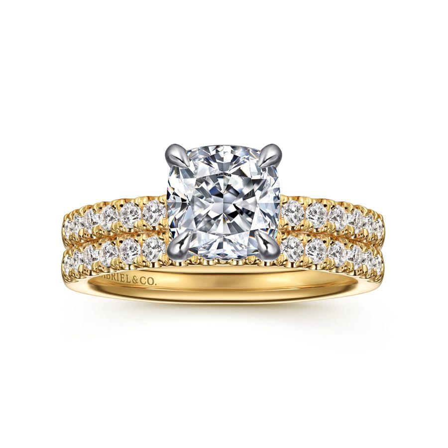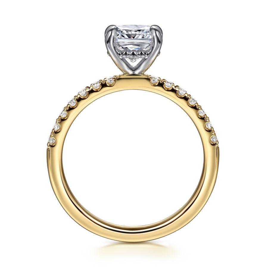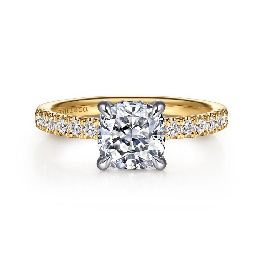 14K White-Yellow Gold Cushion Cut Diamond Engagement Ring