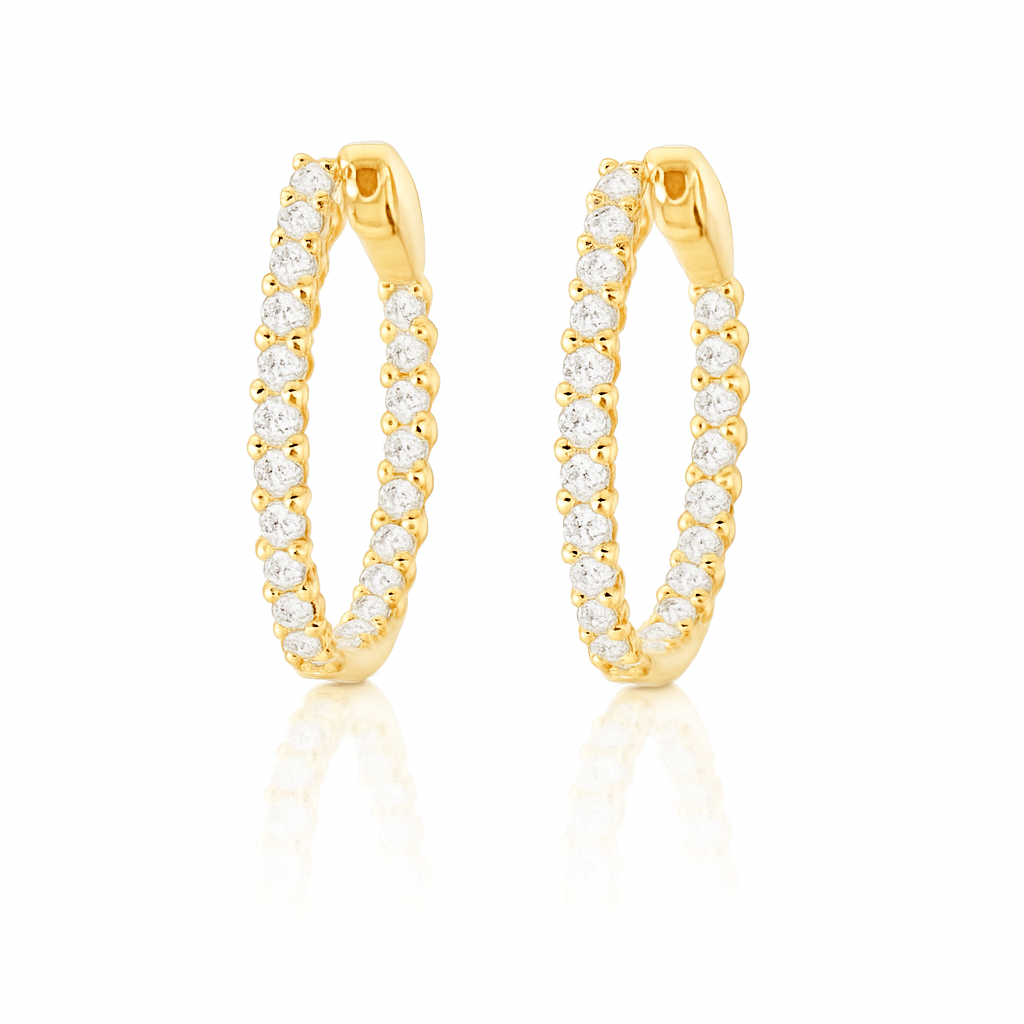 Classic hoop earrings get a sparkling upgrade with round cut diamonds set in a unique inside-out configuration. These exquisite diamond hoop earrings are sure to impress with 1.00ctw of diamonds!