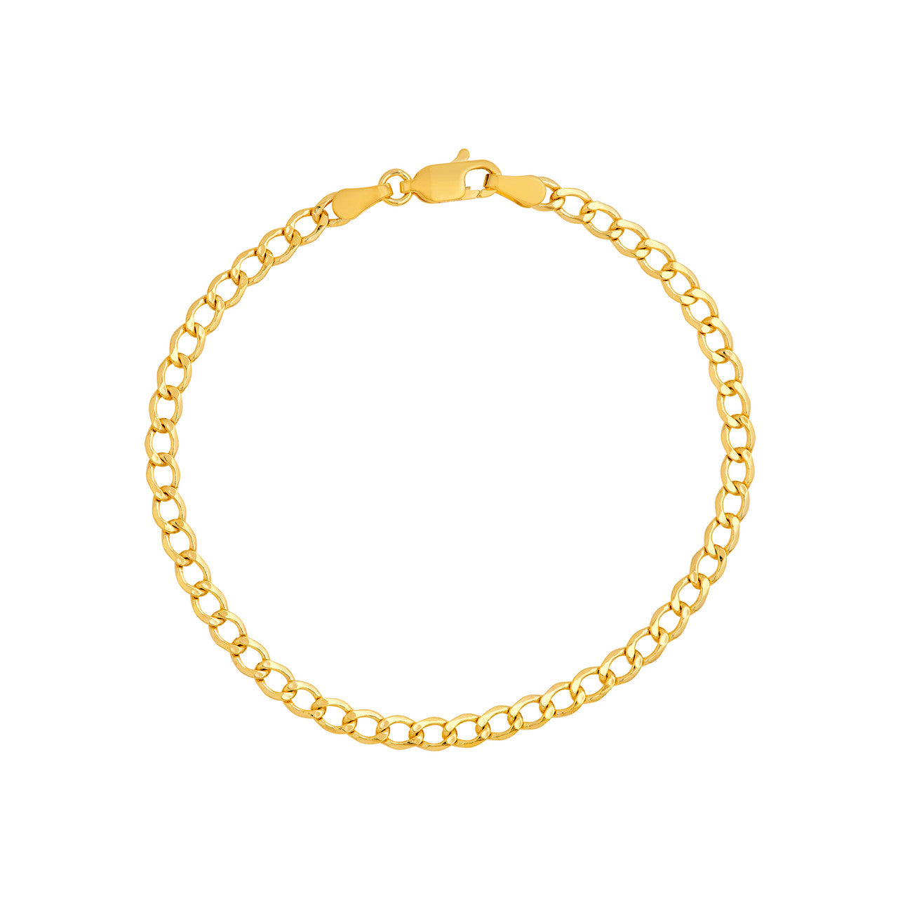 14K Yellow Gold 7" 3.7mm Hollow Diamond Cut Curb Bracelet
