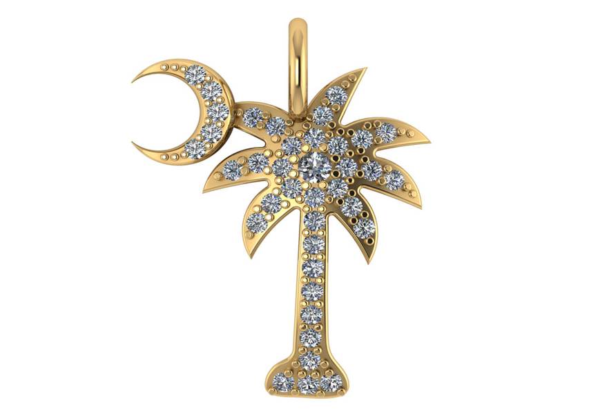 Inspired by lowcountry living, the South Carolina Palmetto and Crescent Moon diamond pendant is a must have! Crafted in 14k yellow gold, it showcases beautiful round brilliant cut diamonds that are perfectly set to shimmer. Total diamond weight is 0.80ctw. Chain not included.