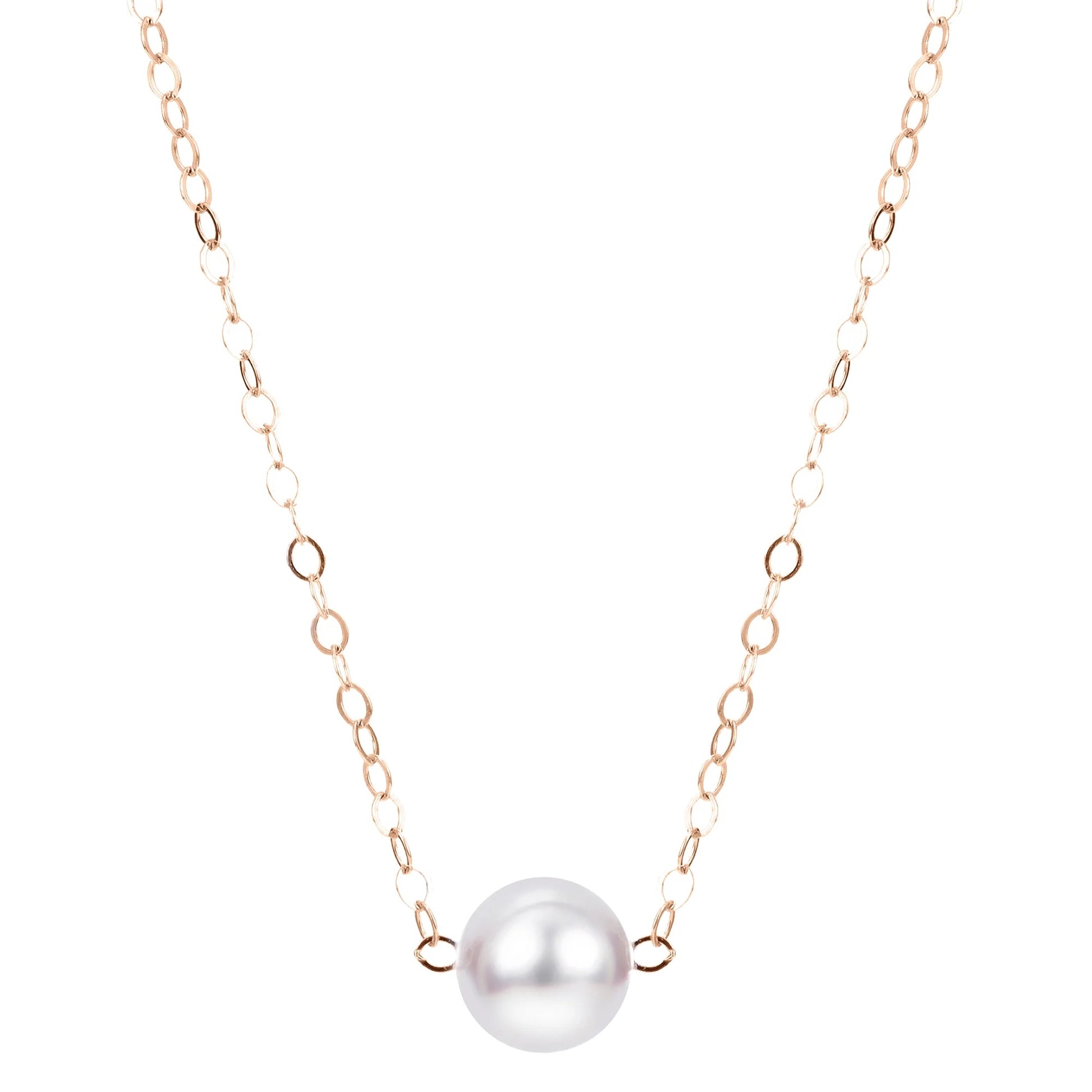 15" 14KT Pearl by Pearl Necklace with 1 Akoya Pearl