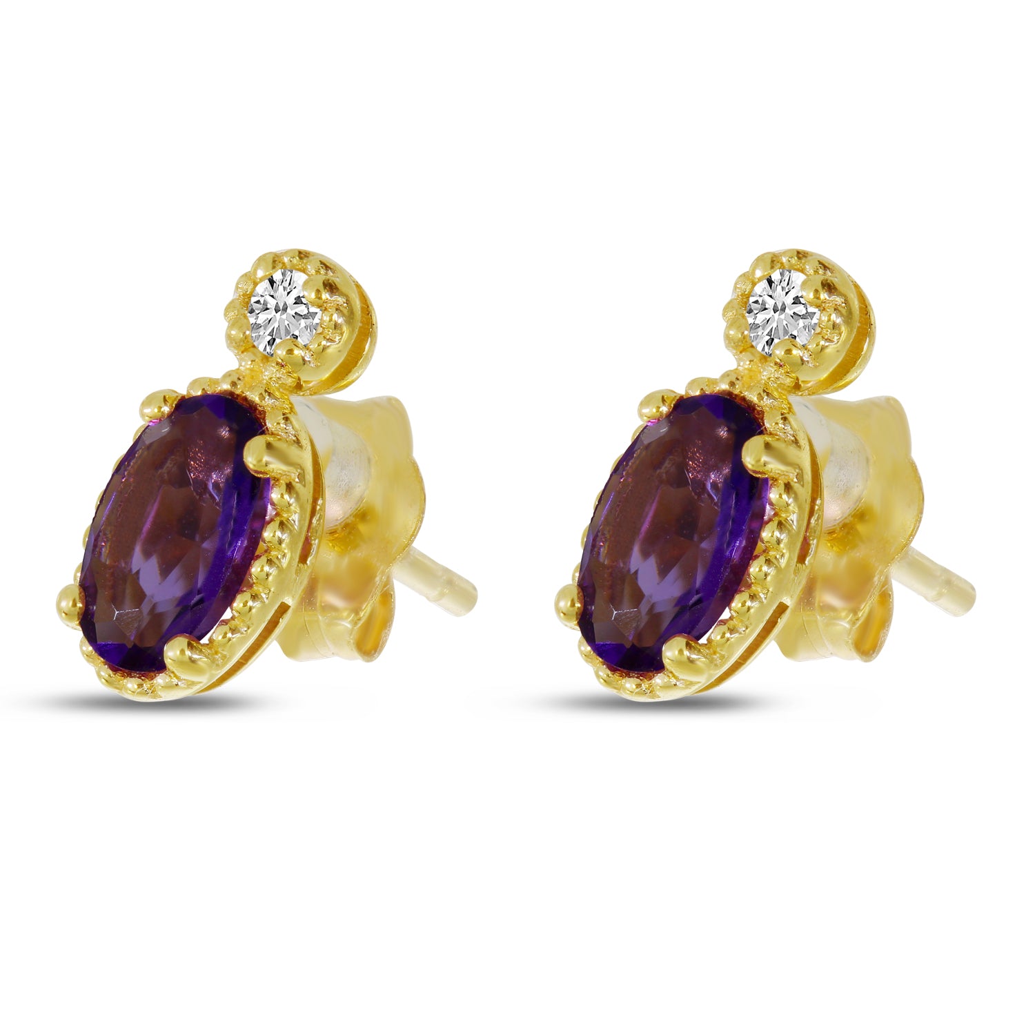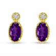 14K Yellow Gold Amethyst and Diamond Stud Earrings