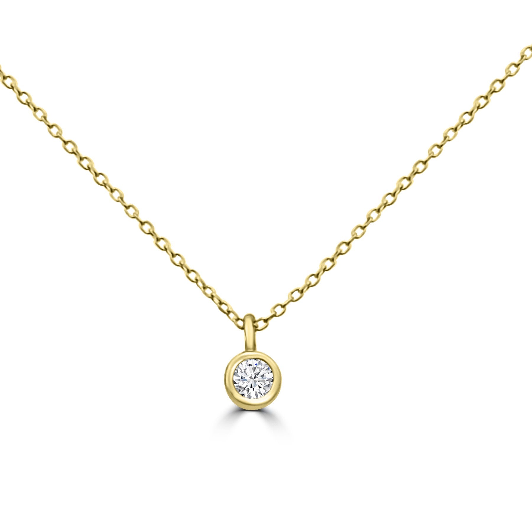 14K Yellow Gold Bezel Set 0.20ct Round Diamond Necklace