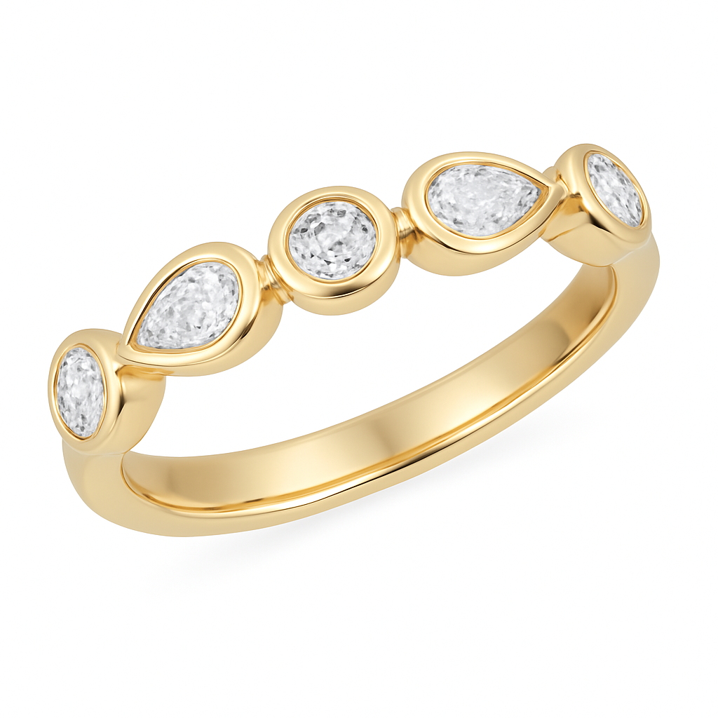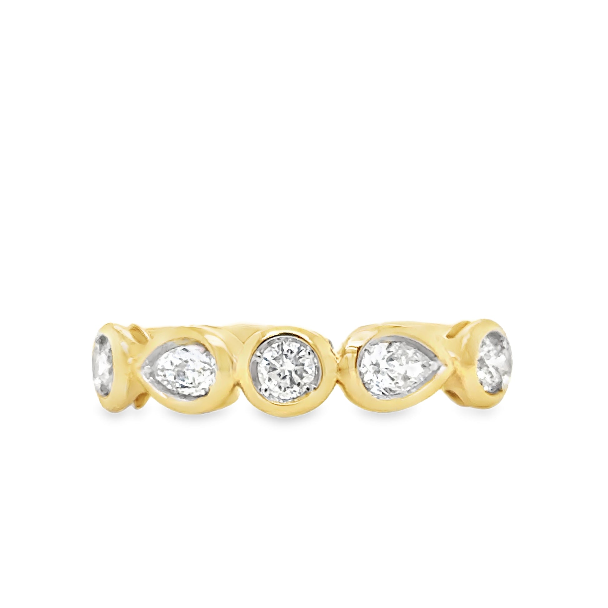 14K Yellow Gold Bezel Set Pear and Round Diamond Band