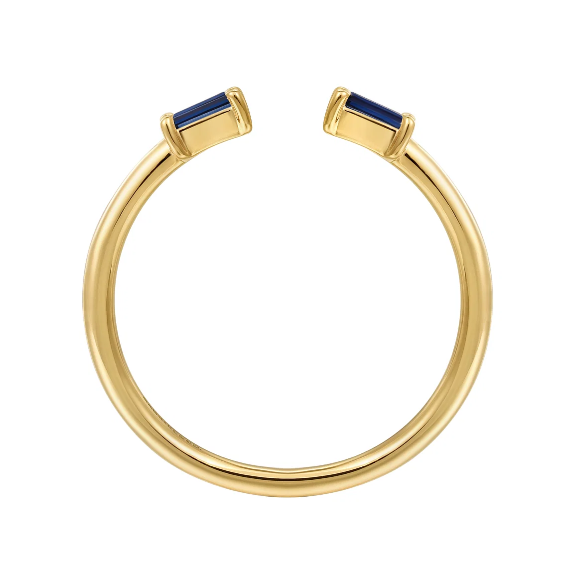 14K Yellow Gold Blue Sapphire Baguette Stackable Ladies Ring