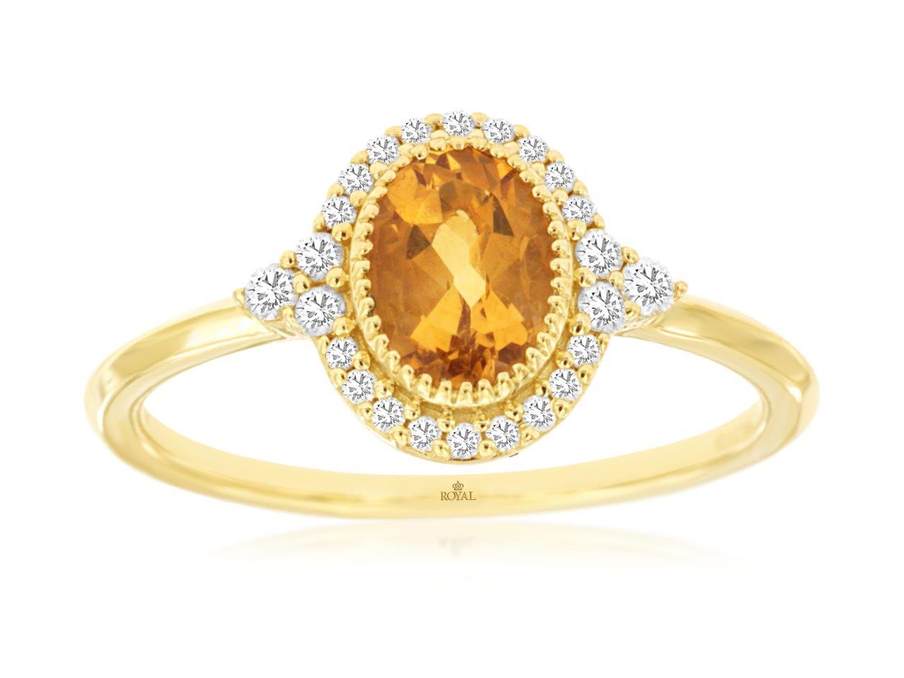 14K Yellow Gold Citrine and Diamond Halo Ring