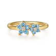 14K Yellow Gold Diamond And Blue Topaz Flower Ring