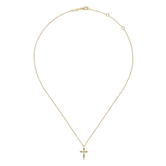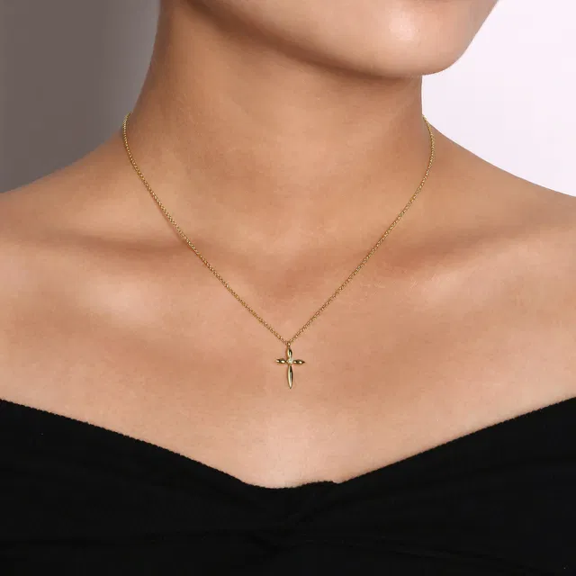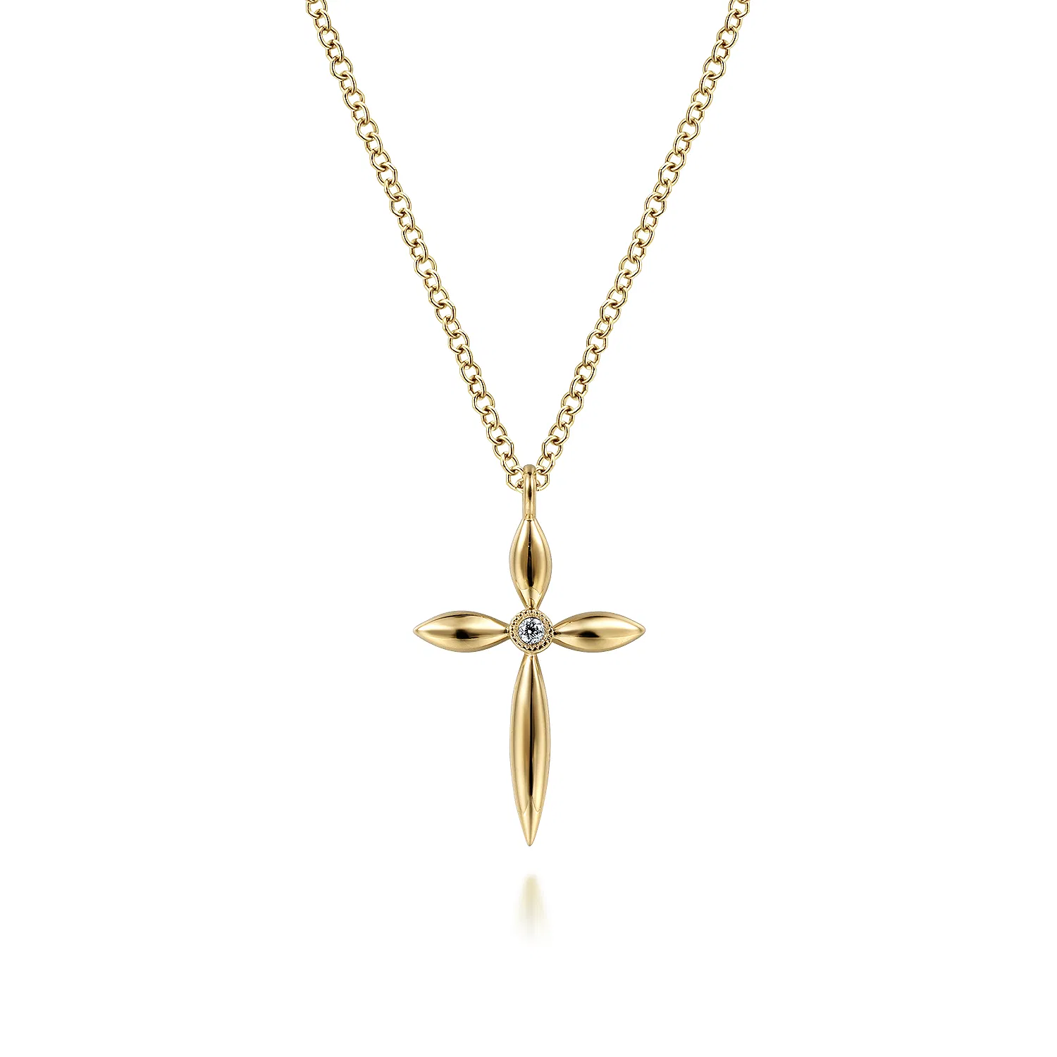 14K Yellow Gold Diamond Cross Pendant Necklace