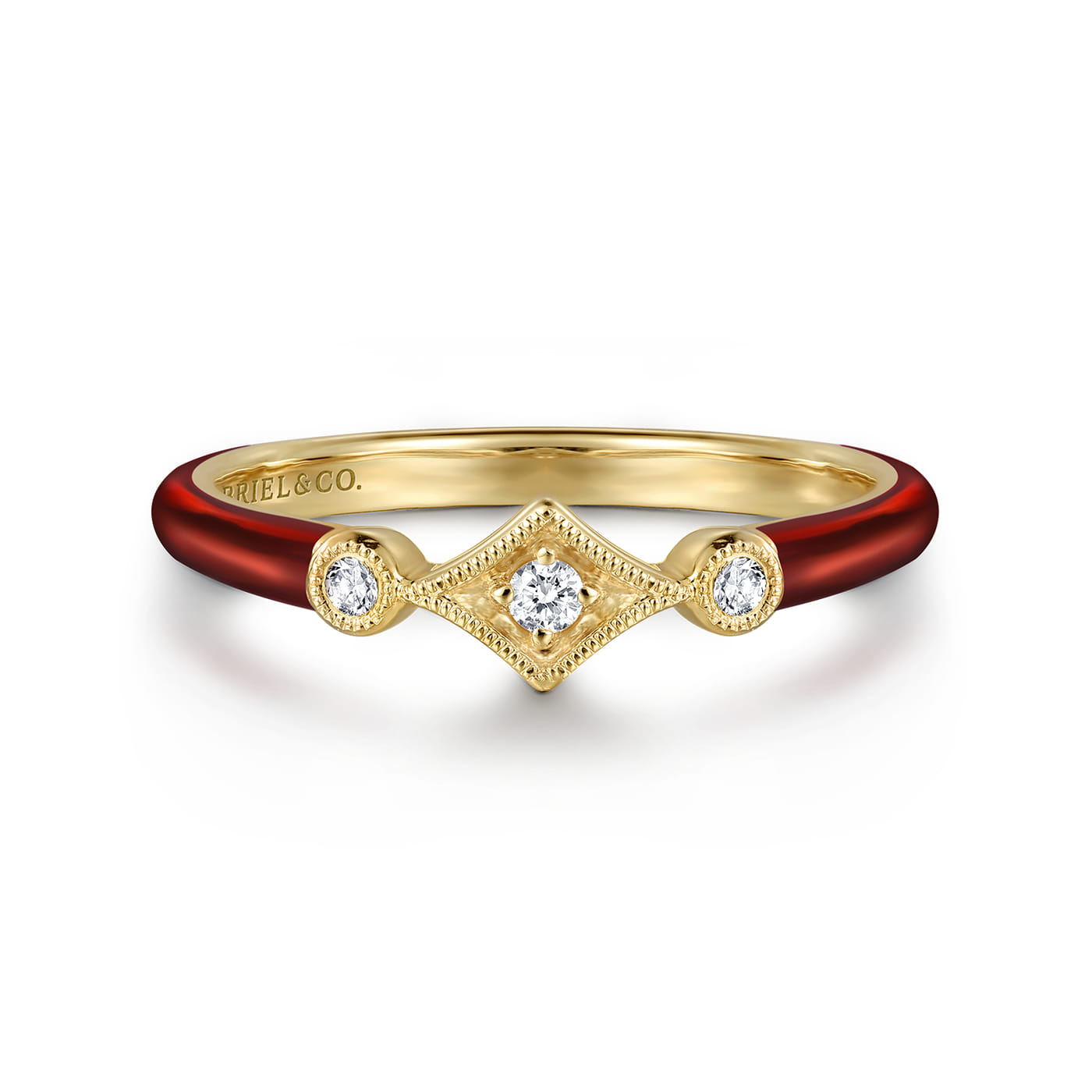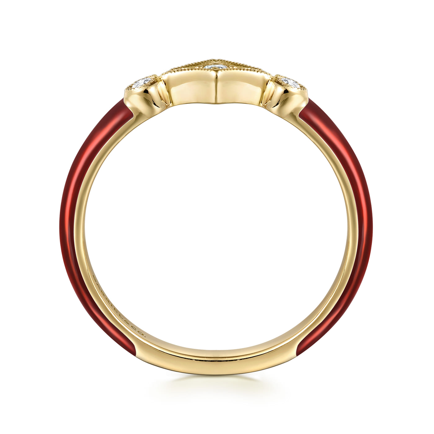 14K Yellow Gold Diamond Split Stackable with Chrome Red Enamel