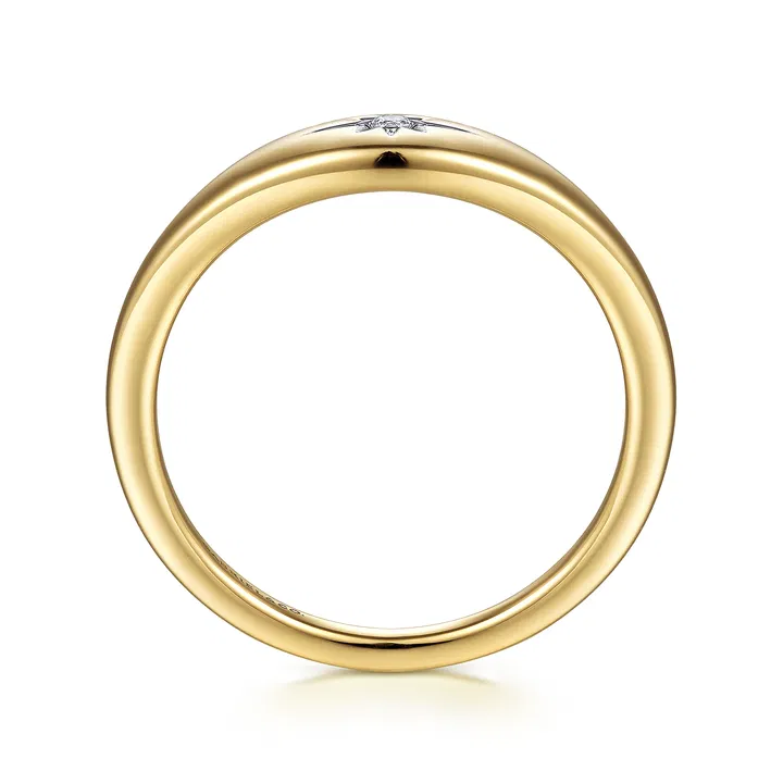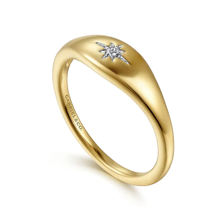 Add a touch of celestial elegance to your look with this 14K yellow gold diamond starburst signet ring. Featuring diamonds totaling 0.02 carats arranged in a radiant starburst pattern, this ring combines modern design with timeless sparkle. Its classic signet silhouette is perfect for making a subtle statement, whether worn alone or stacked with other rings.