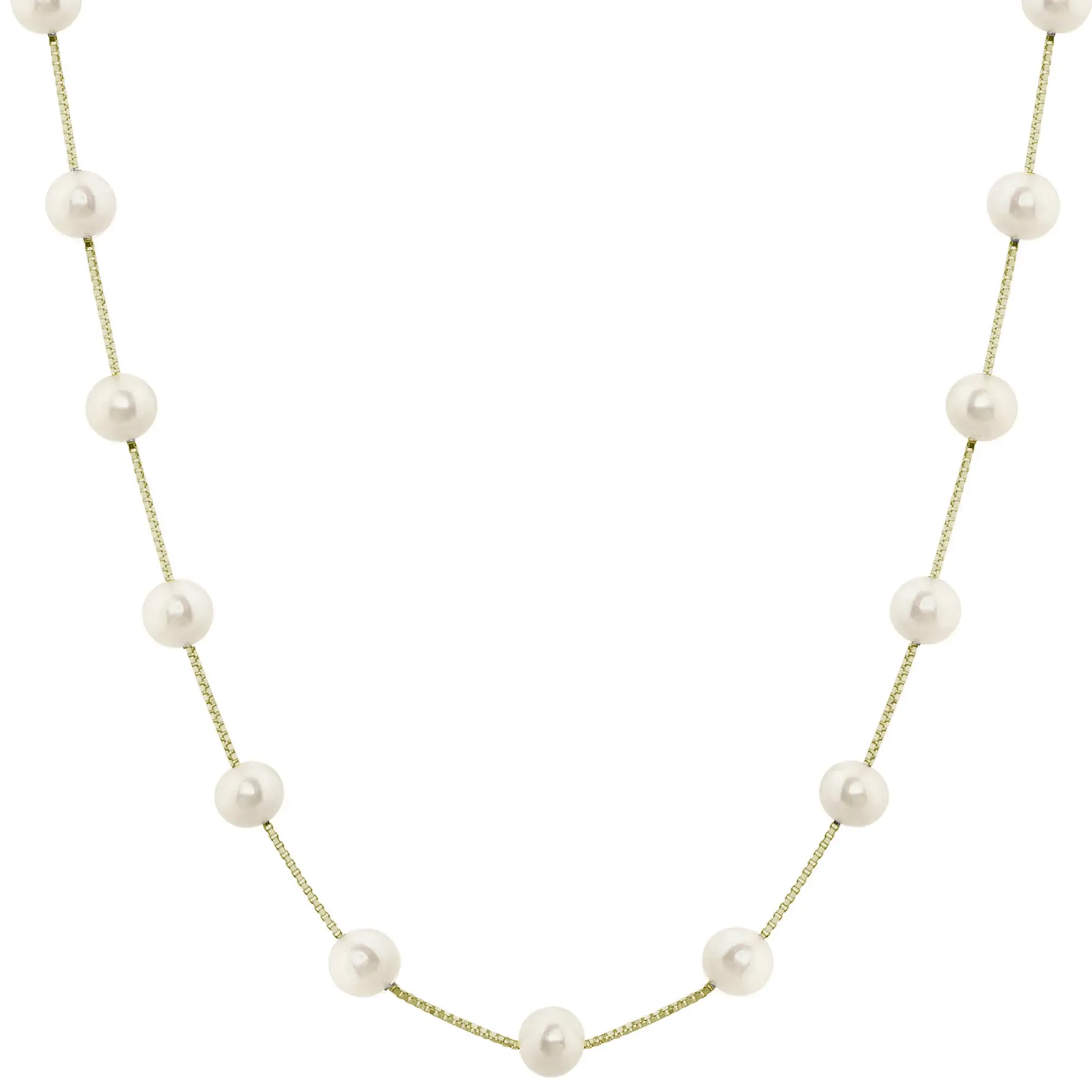 14K Yellow Gold Freshwater Pearl Station Necklace (17")