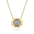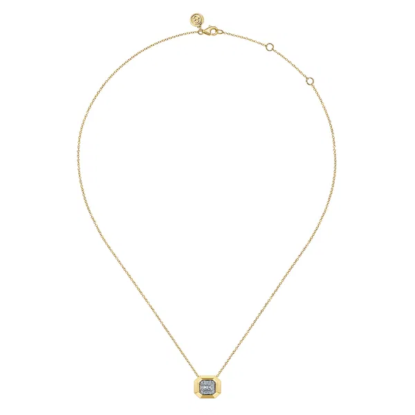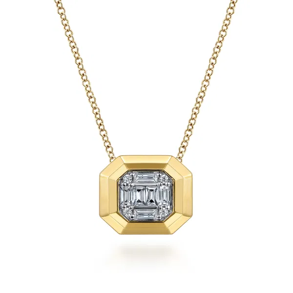 14K Yellow Gold Geometric Baguette and Round Diamond Pendant Necklace