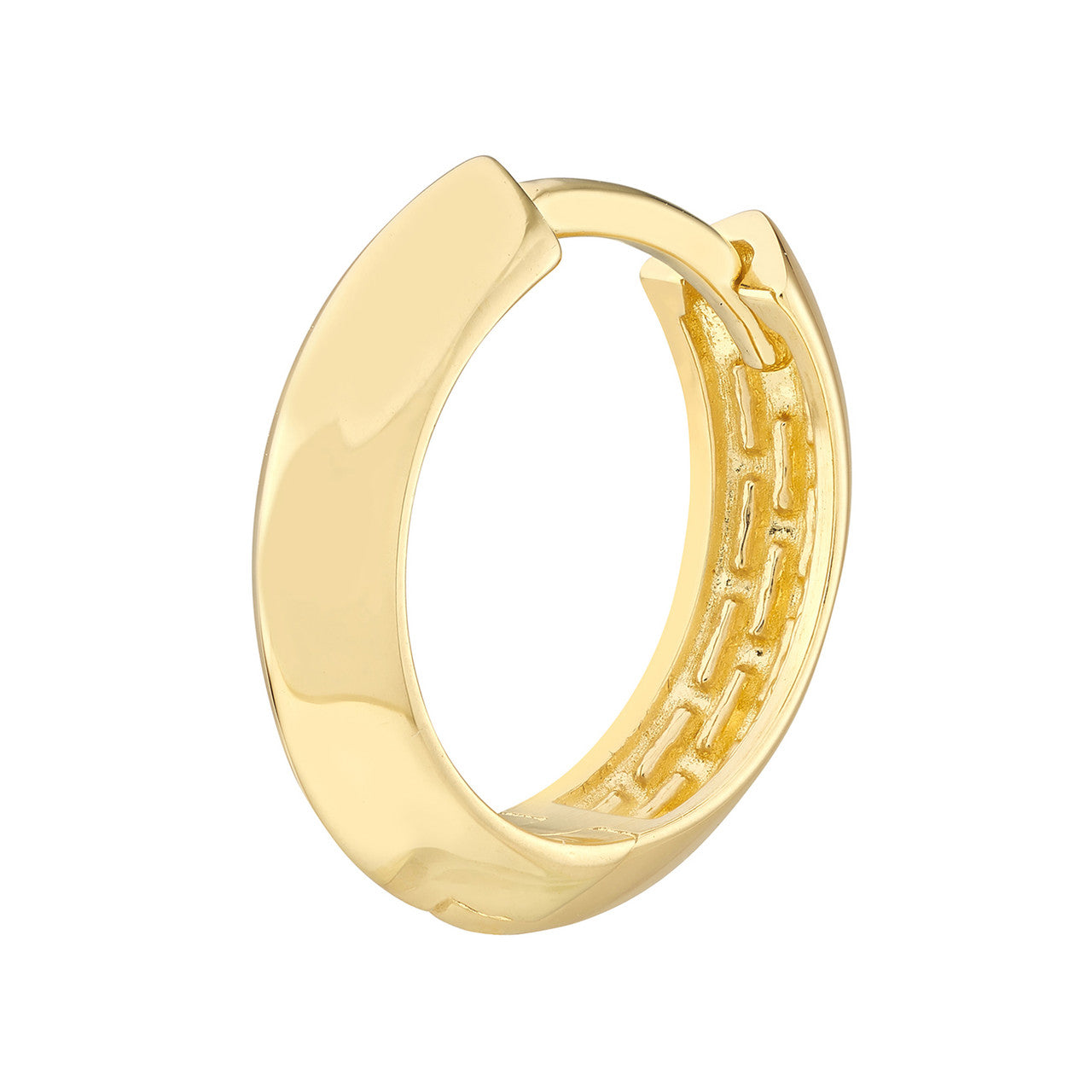 High shine Knife Edge polished hoops are everyday staples. 3.50x13.50mm in size made in 14K gold.