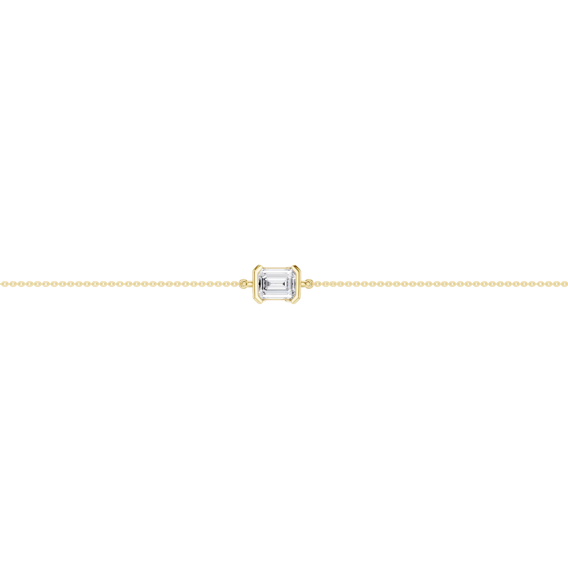 Crafted in timeless 14KT yellow gold, this refined bracelet features a sleek 4-prong setting showcasing a dazzling .75 ct lab grown emerald-cut diamond as the centerpiece. A delicate dangle detail adds graceful movement, highlighted by an additional 1/4 ct emerald-cut diamond for subtle sparkle and sophistication. A modern take on classic elegance - perfect work solo or layered for added shine.