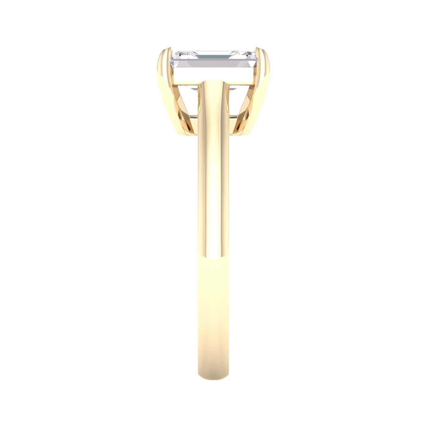 Presenting our classic emerald cut lab grown diamond solitaire ring, a testament to enduring elegance. Certified by IGI for authenticity, this exquisite ring is set in 14KT yellow gold and adorned with 2.0 ct emerald cut diamond. The diamonds' remarkable f color and VS clarity, validated by IGI, come to life in the timeless eagle claw-set four-prong setting, creating a mesmerizing display of brilliance.