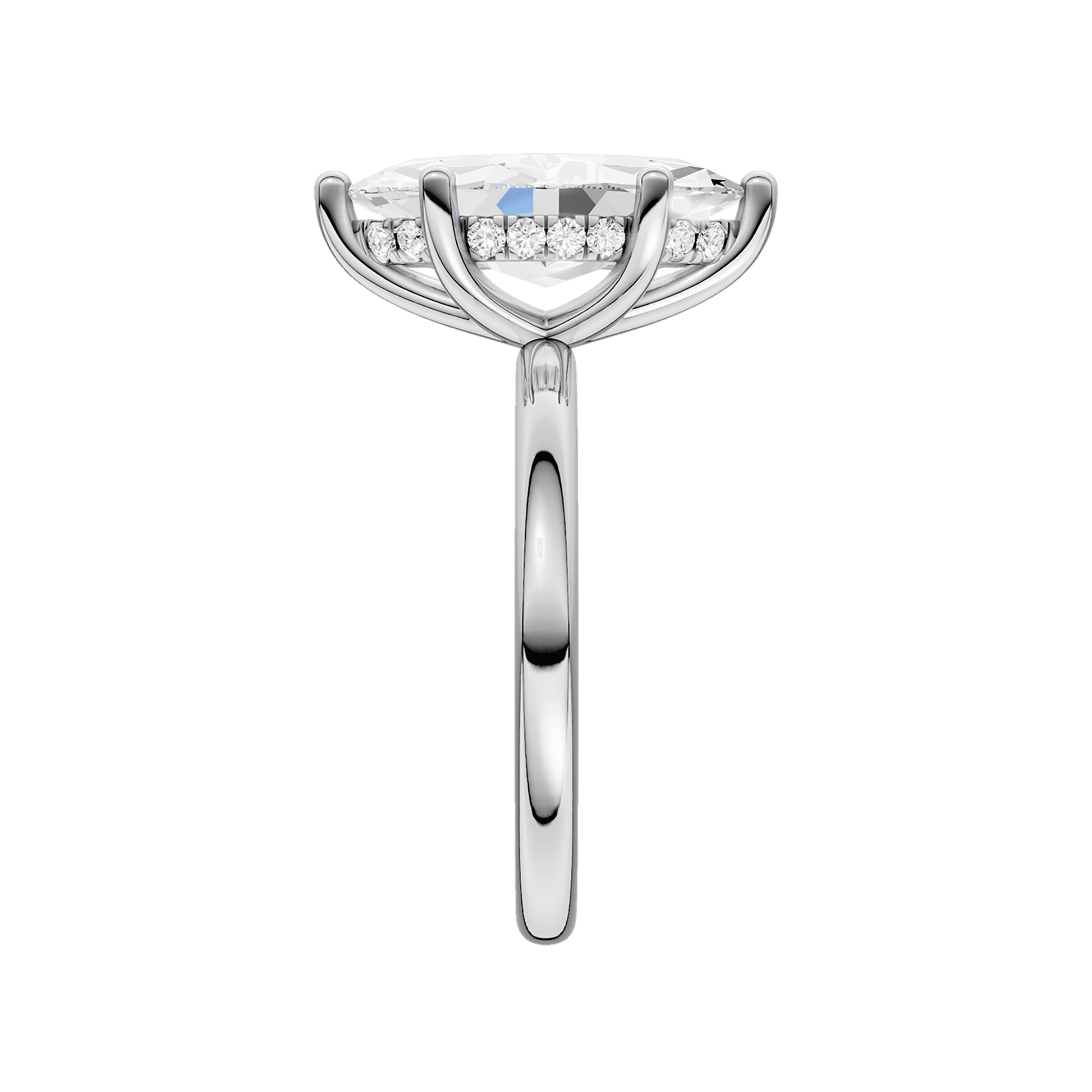 Introducing our Lab Grown Diamond Hidden Halo Engagement Ring, expertly crafted in 14KT yellow gold and adorned with a total of 3.18 carats total weight. The centerpiece of this exquisite ring is a stunning marquise brilliant-cut diamond, weighing 3.06 ct, boasting E/F color and VS clarity, and certified by IGI for authenticity and quality. With its latest and modern design, this ring captures both contemporary trends and the timeless elegance of a classic era, making it a symbol of enduring love and style.