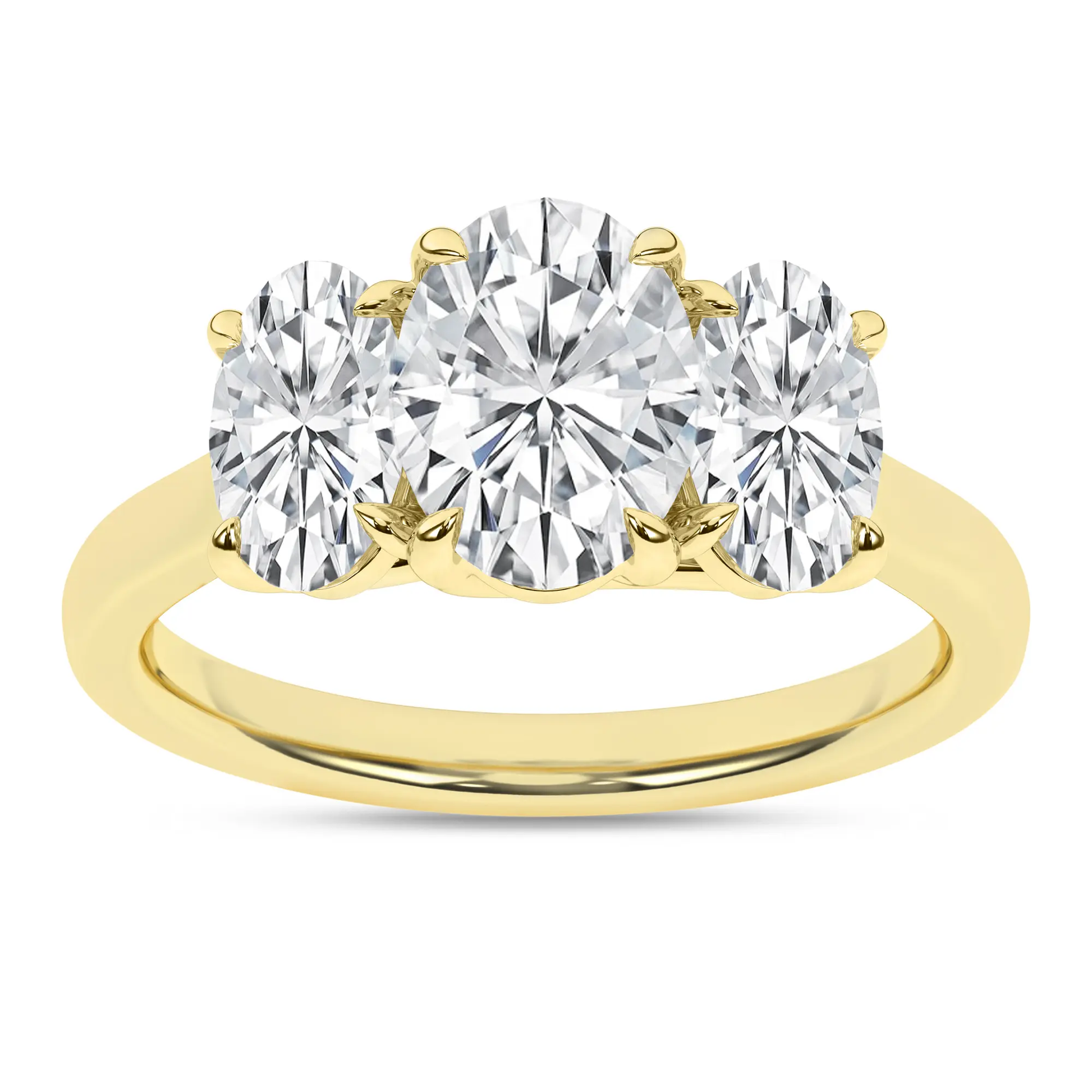 14K Yellow Gold Lab Grown 3.06ctw Three Stone Oval Engagement Ring