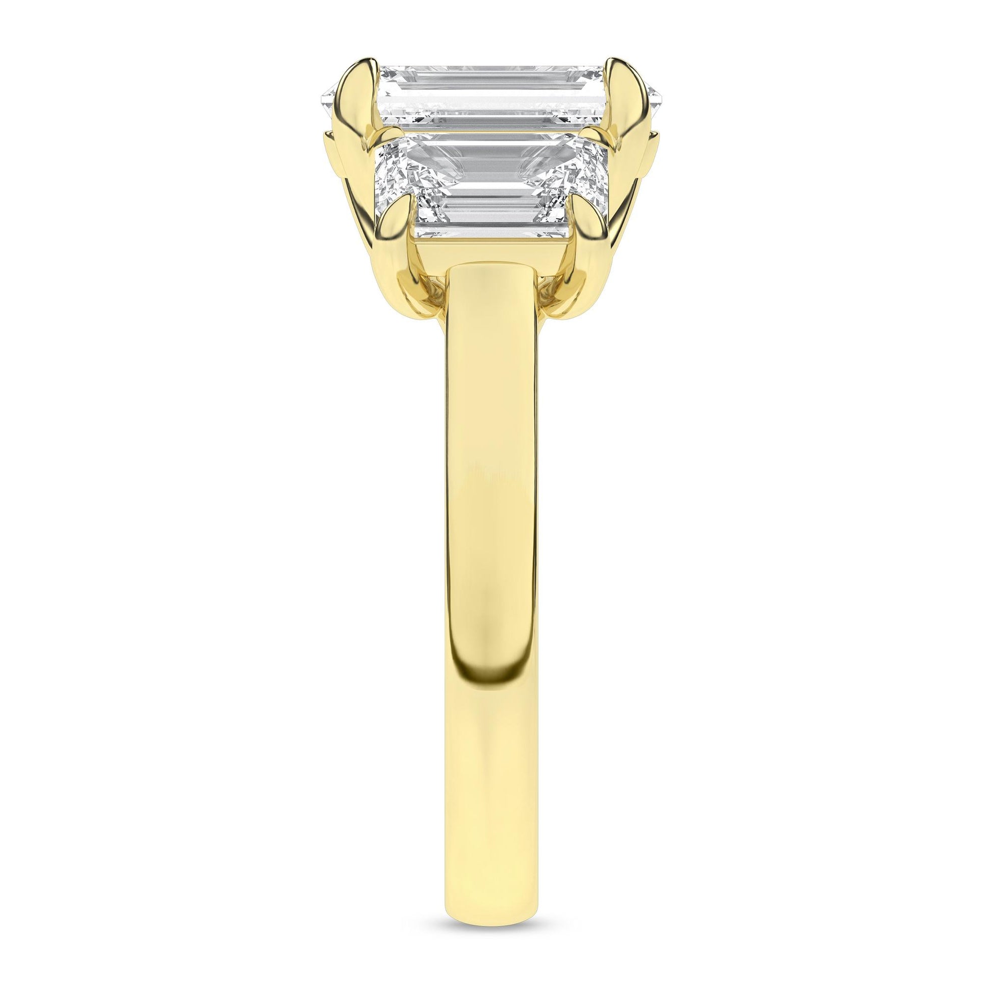 14K Yellow Gold Lab Grown 5.0ctw Three Stone Emerald Engagement Ring