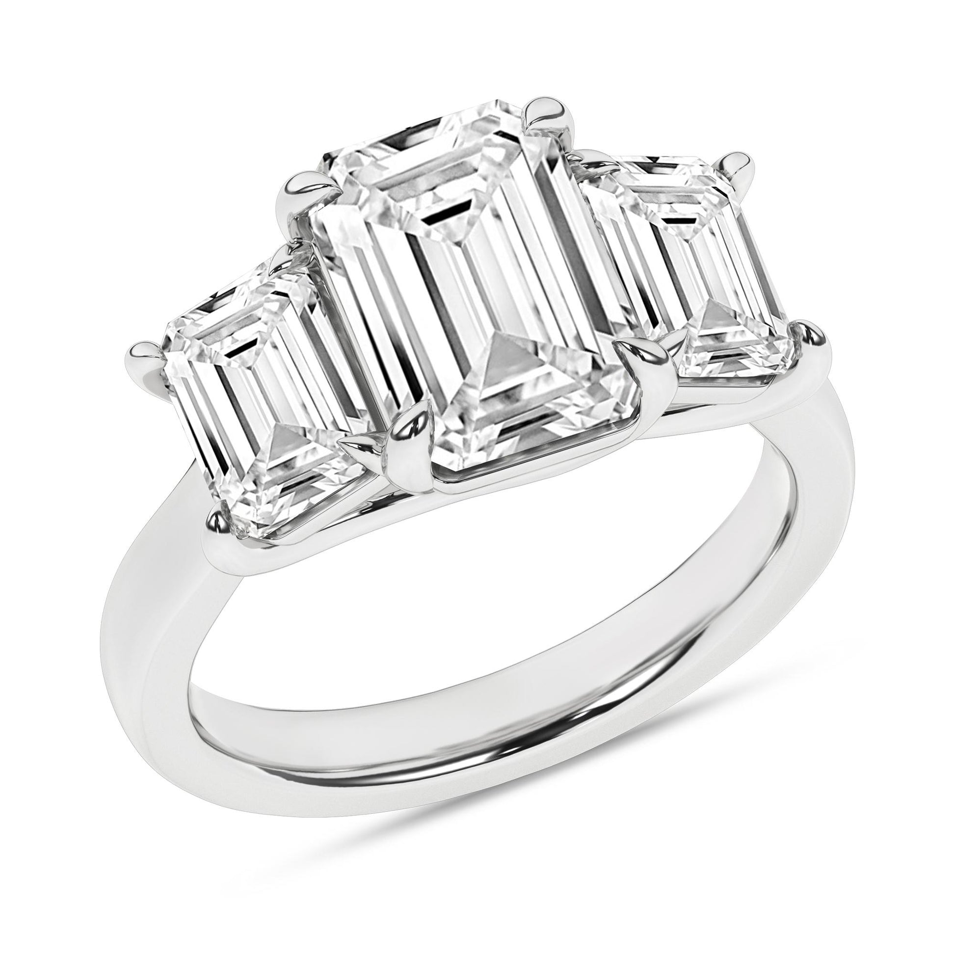 Experience the allure of our alluring oval lab-created Diamond Ring, a true masterpiece featuring three brilliant emerald-cut diamonds seamlessly set in a row, creating a harmonious display of radiant beauty in 14KT white gold. This exquisite ring is studded with 5.0 carat total weight of diamonds, each one certified by IGI for authenticity and quality assurance. The center emerald-cut stone is a dazzling 3.0 ct, while the sides boast equally stunning 2 carats total diamonds. With EF color diamonds and VS clarity, this ring sparkles with unmatched brilliance, making it a remarkable symbol of your enduring love and commitment.