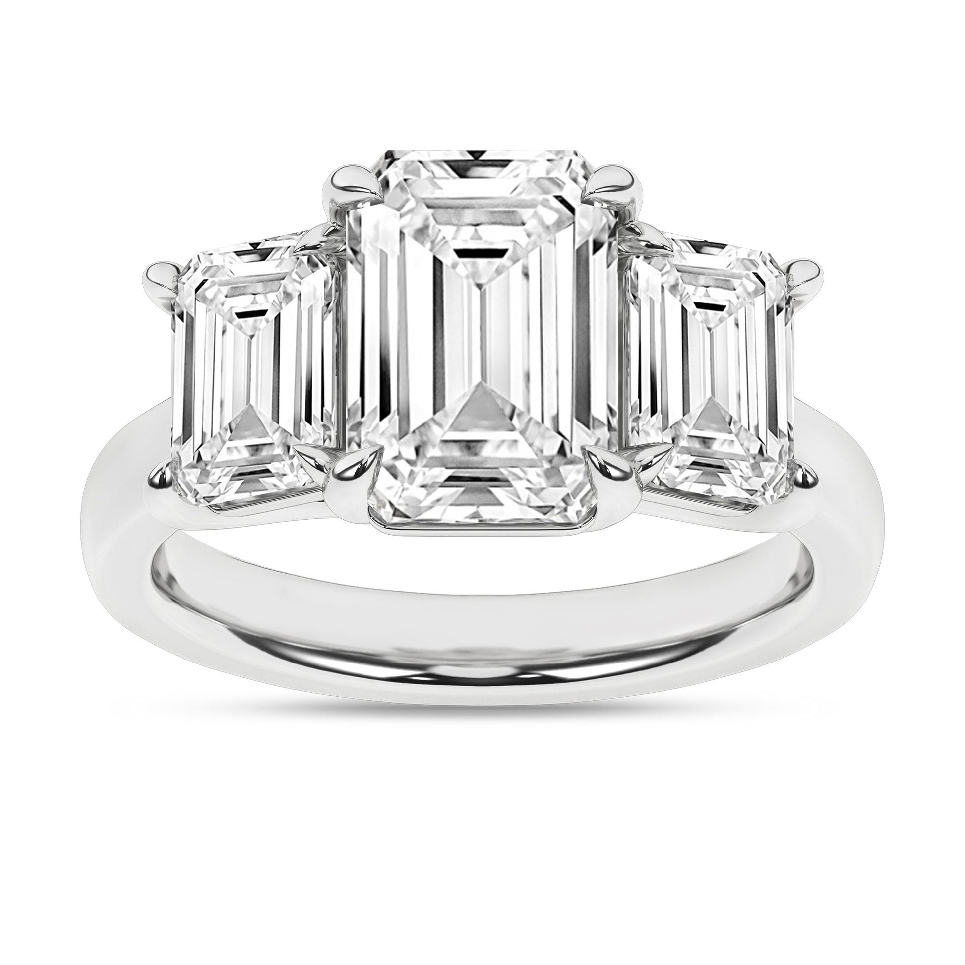 14K White Gold Lab Grown 5ctw Three Stone Emerald Engagement Ring